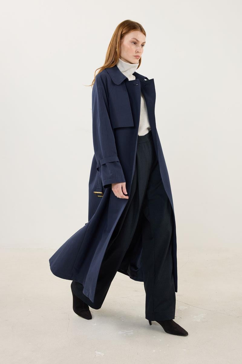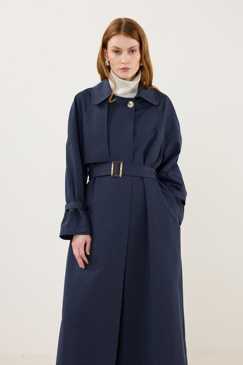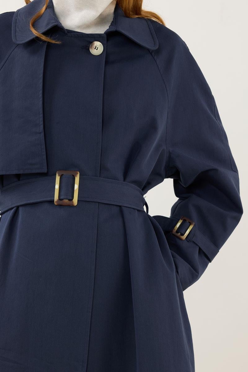 Navy Trench Coat with Bone Buckle