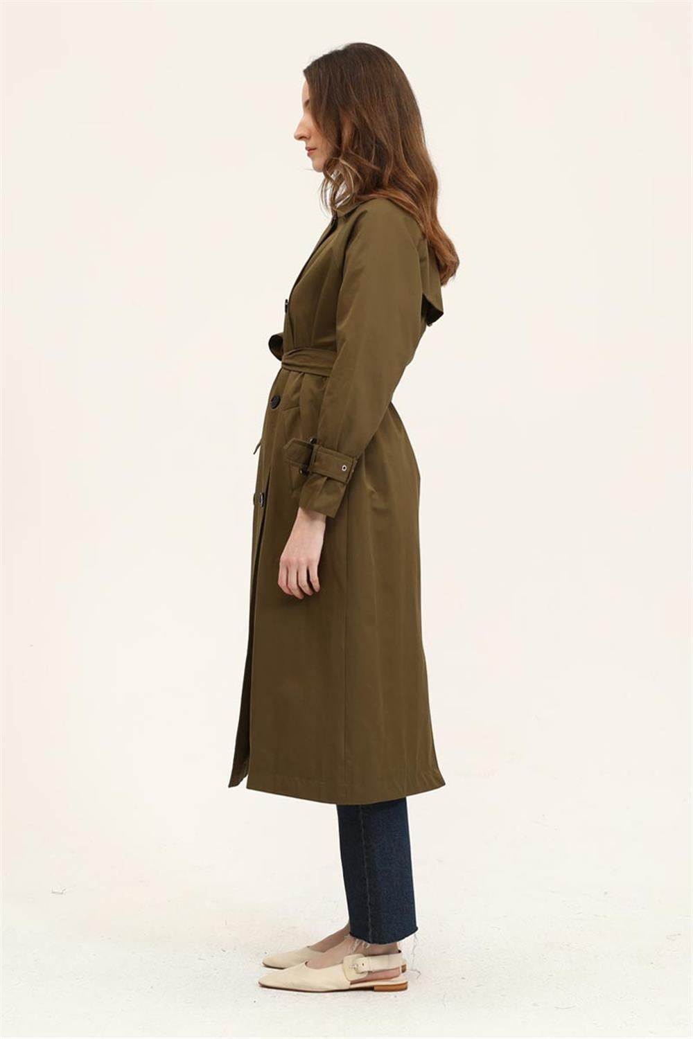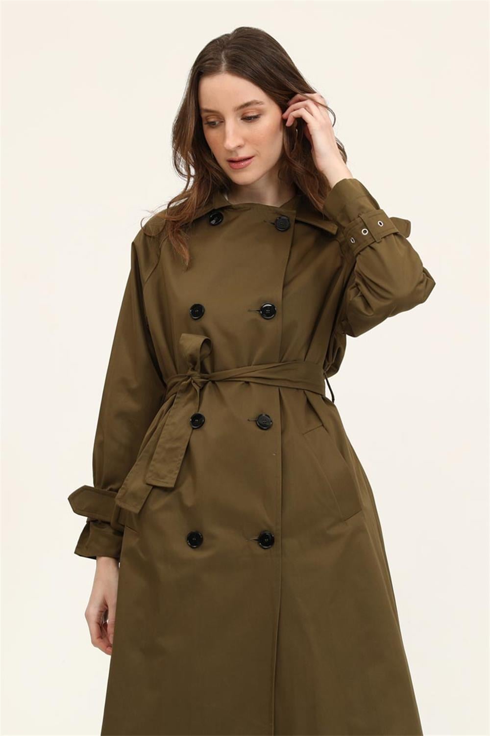 Tags: cotton, lined, olive green, polyester, regular fit, trench coat, women