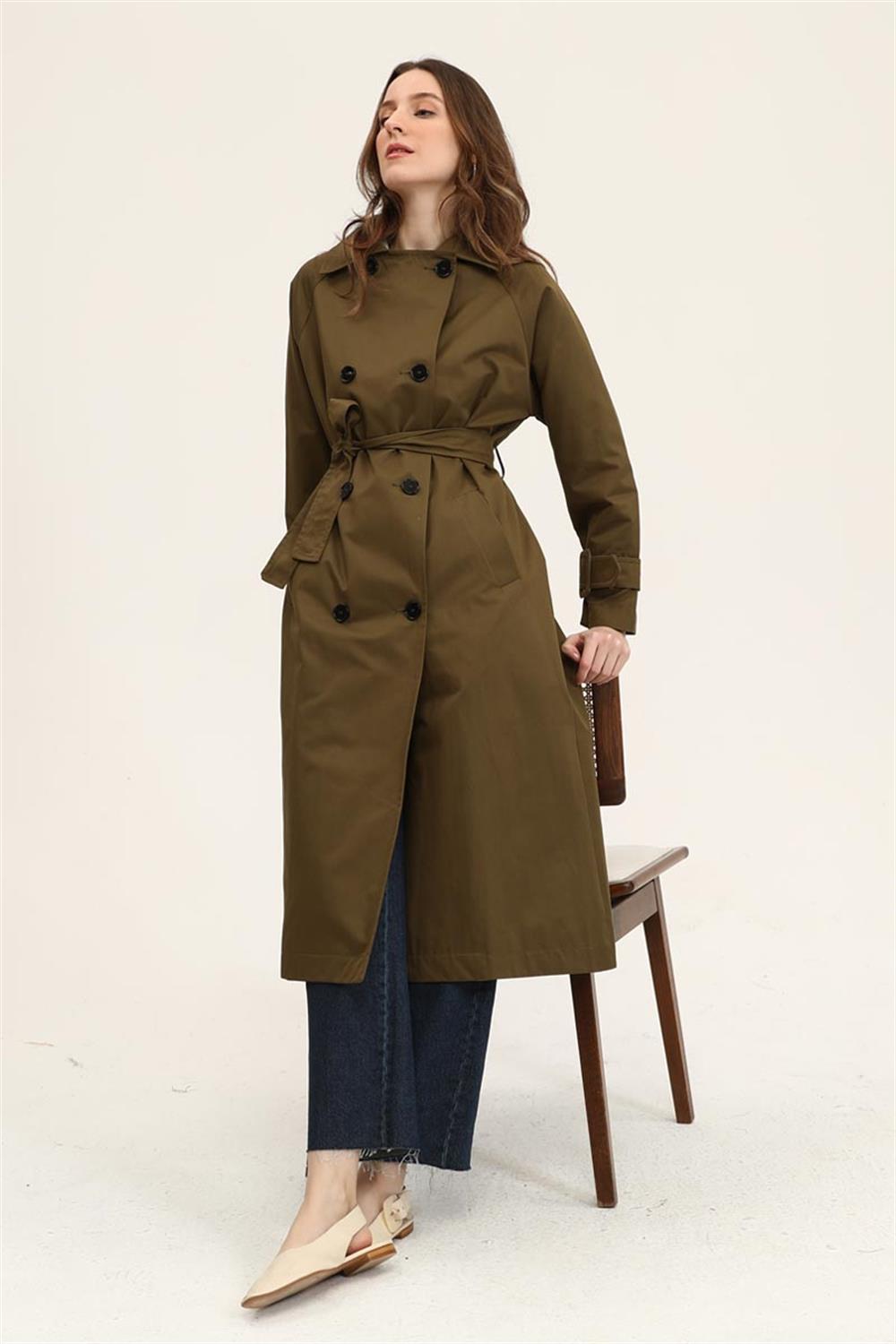 Olive Green Lined Trench Coat