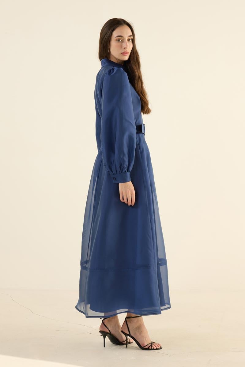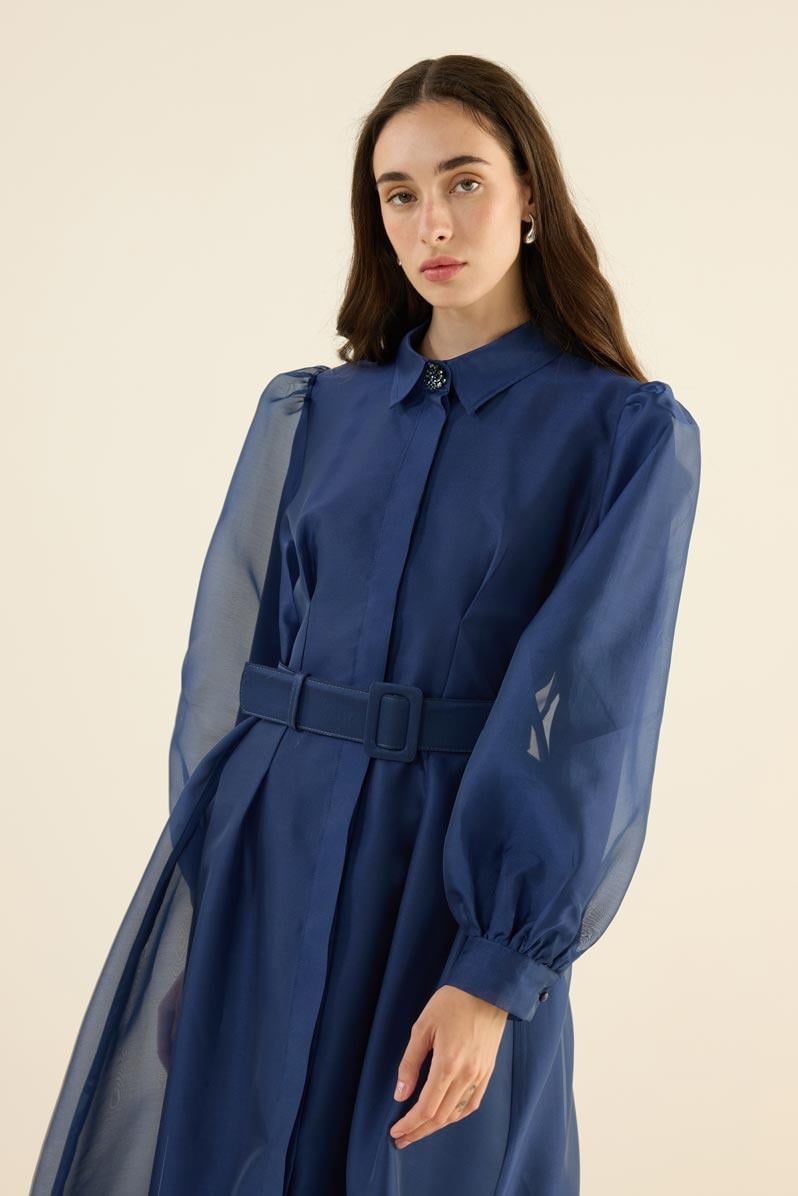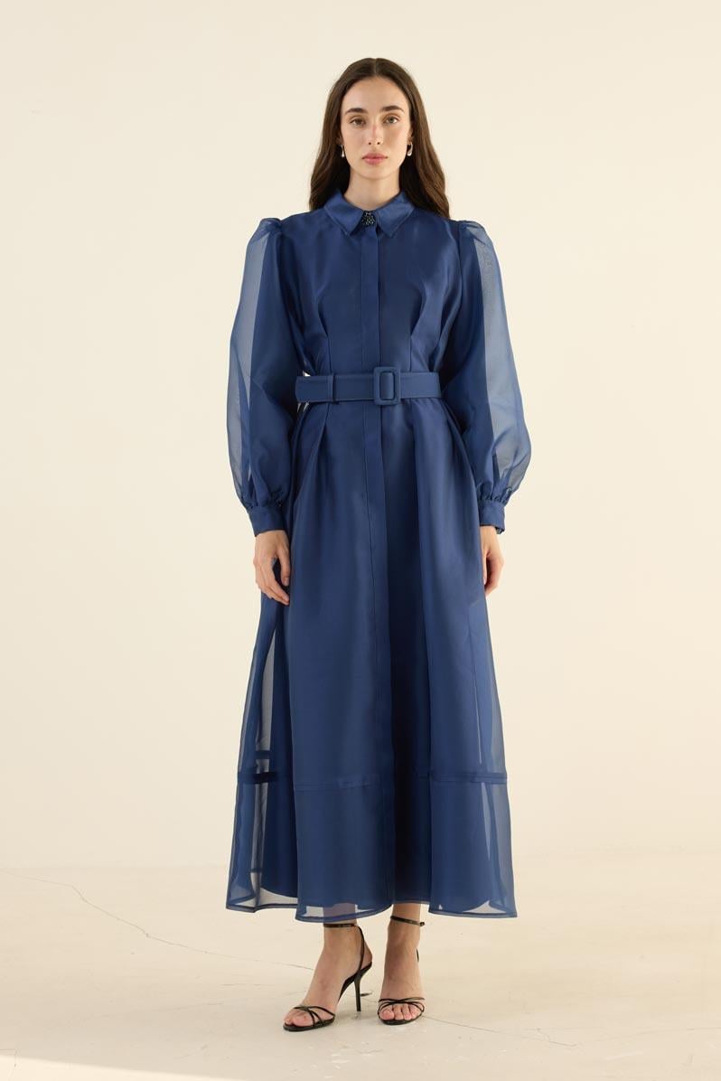 Organze Kap Elbise Lacivert