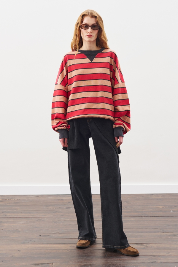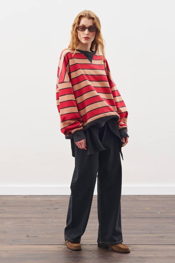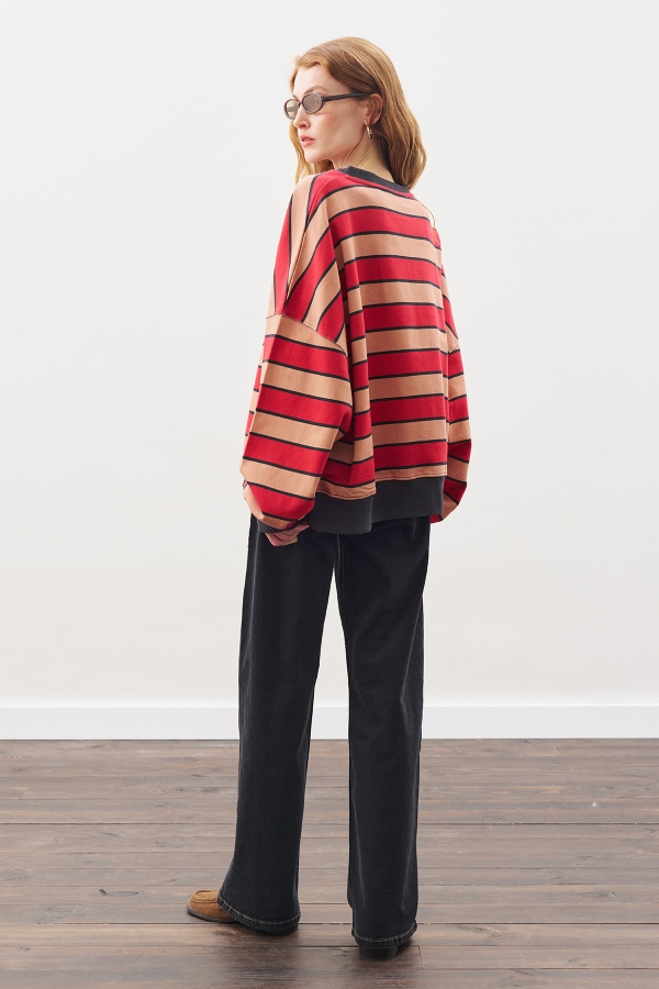 OVERSIZED STRIPED SWEATSHIRT RED