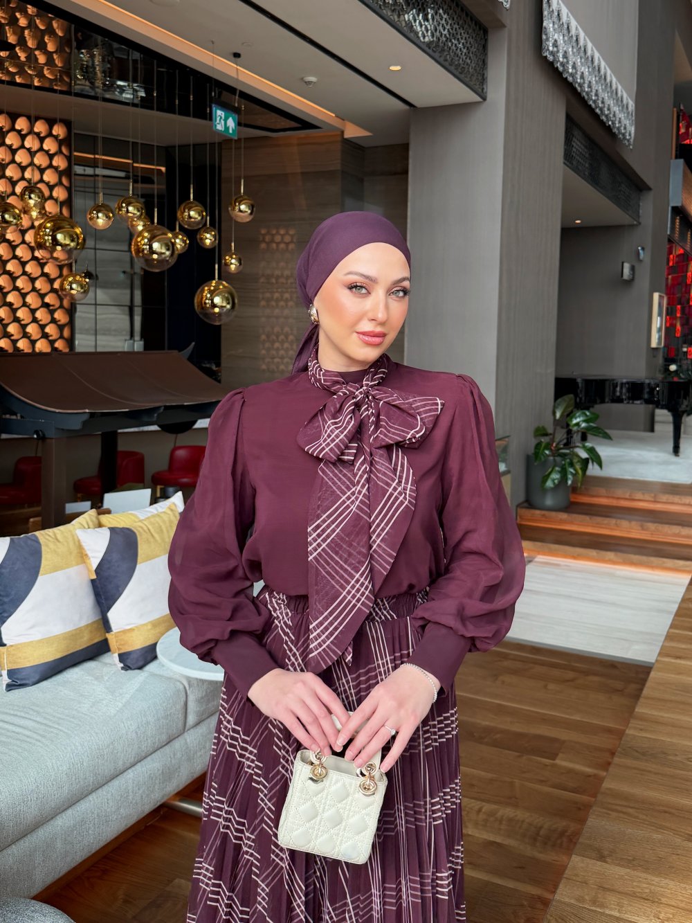 Tags: burgundy, chiffon, plaid, pleated, skirt set, women's fashion
