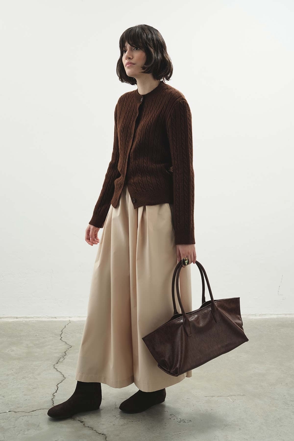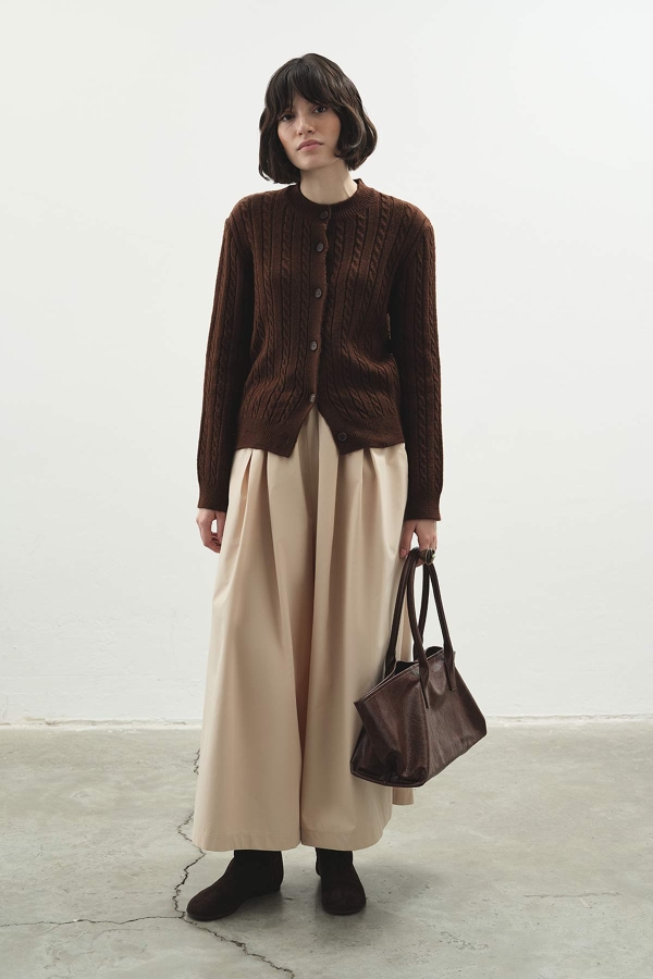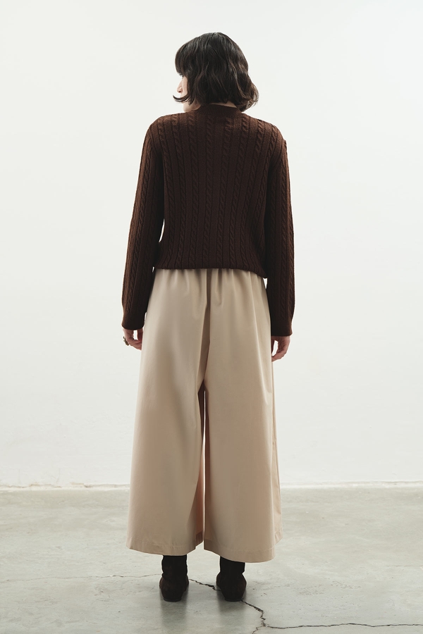 Bej-Beli Lastikli Palazzo Modal Pantolon