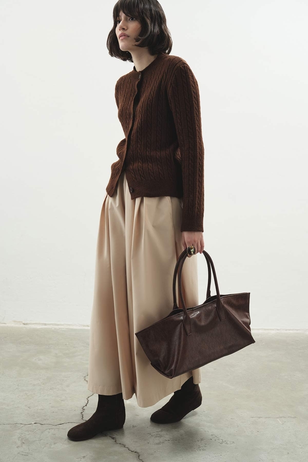 Coffee-Colored Elastic Waist Wide Leg Pants