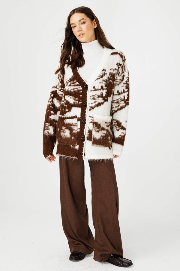 Patterned Coffee Cardigan