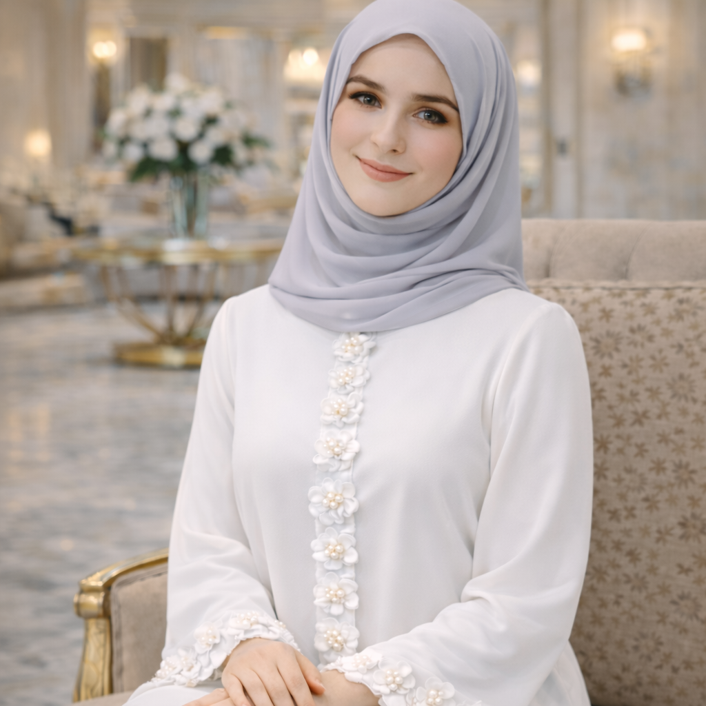 Tags: abeya, detailed, elegant, floral, modest fashion, pearl, special occasion, White