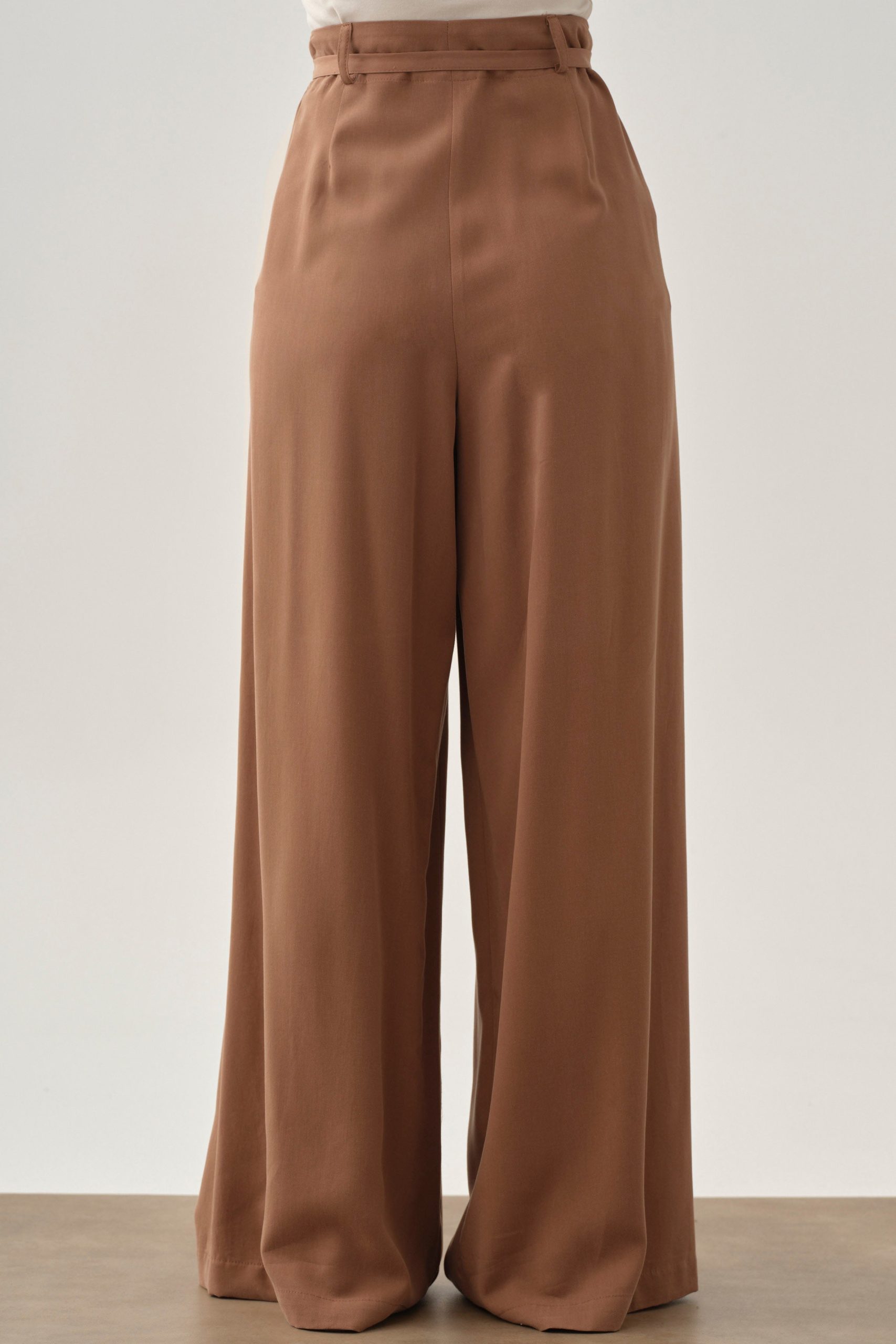 Pileli Kemerli Pantolon – Kahve