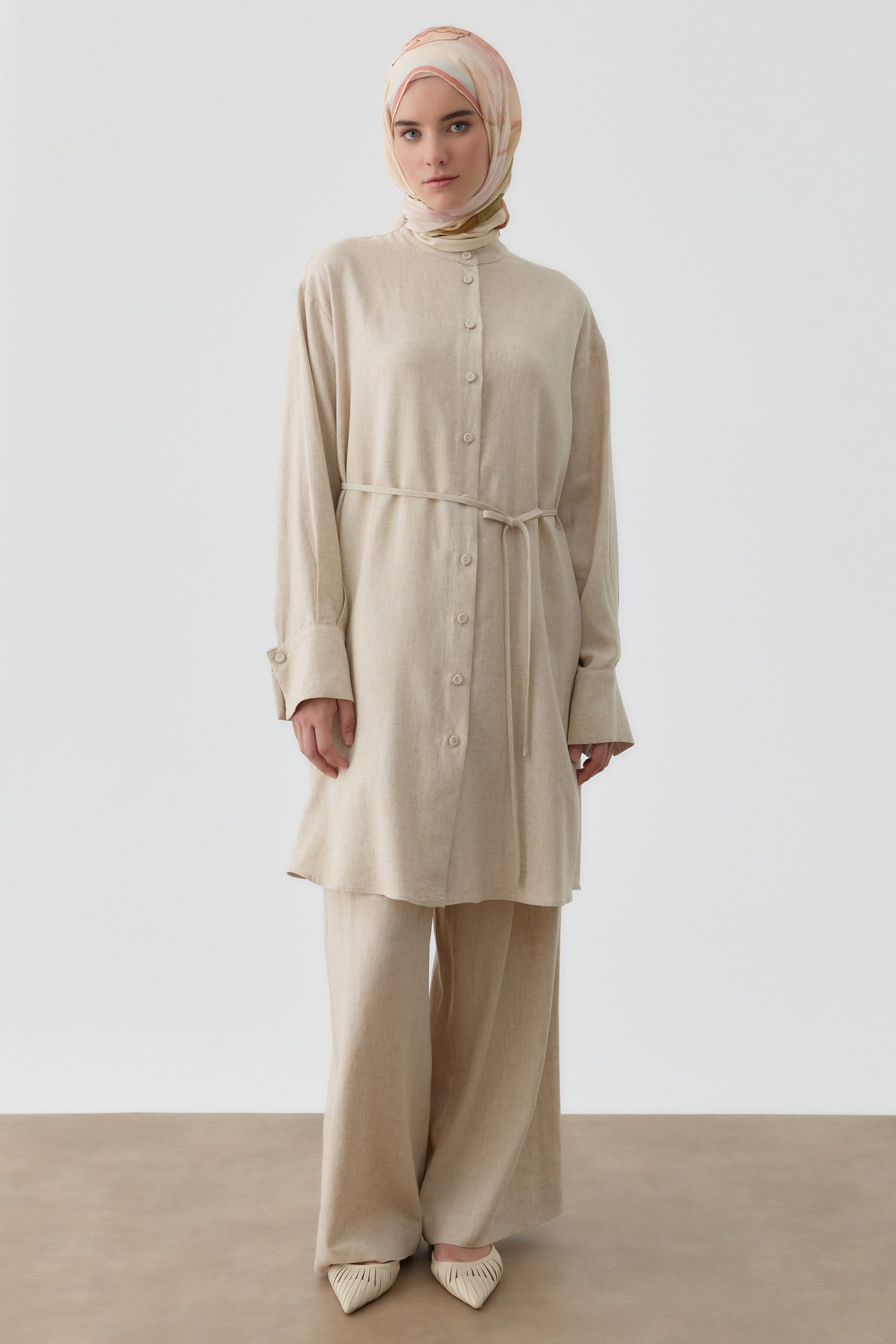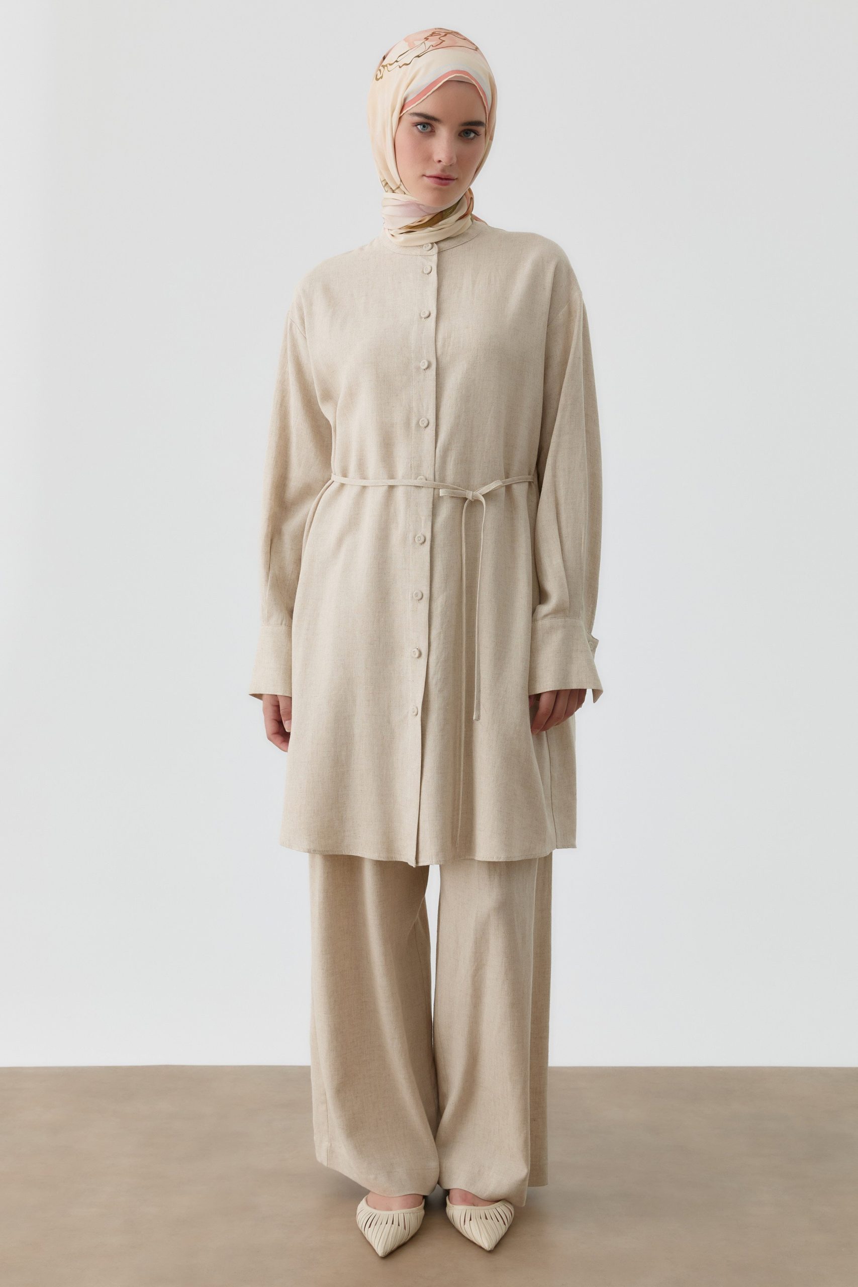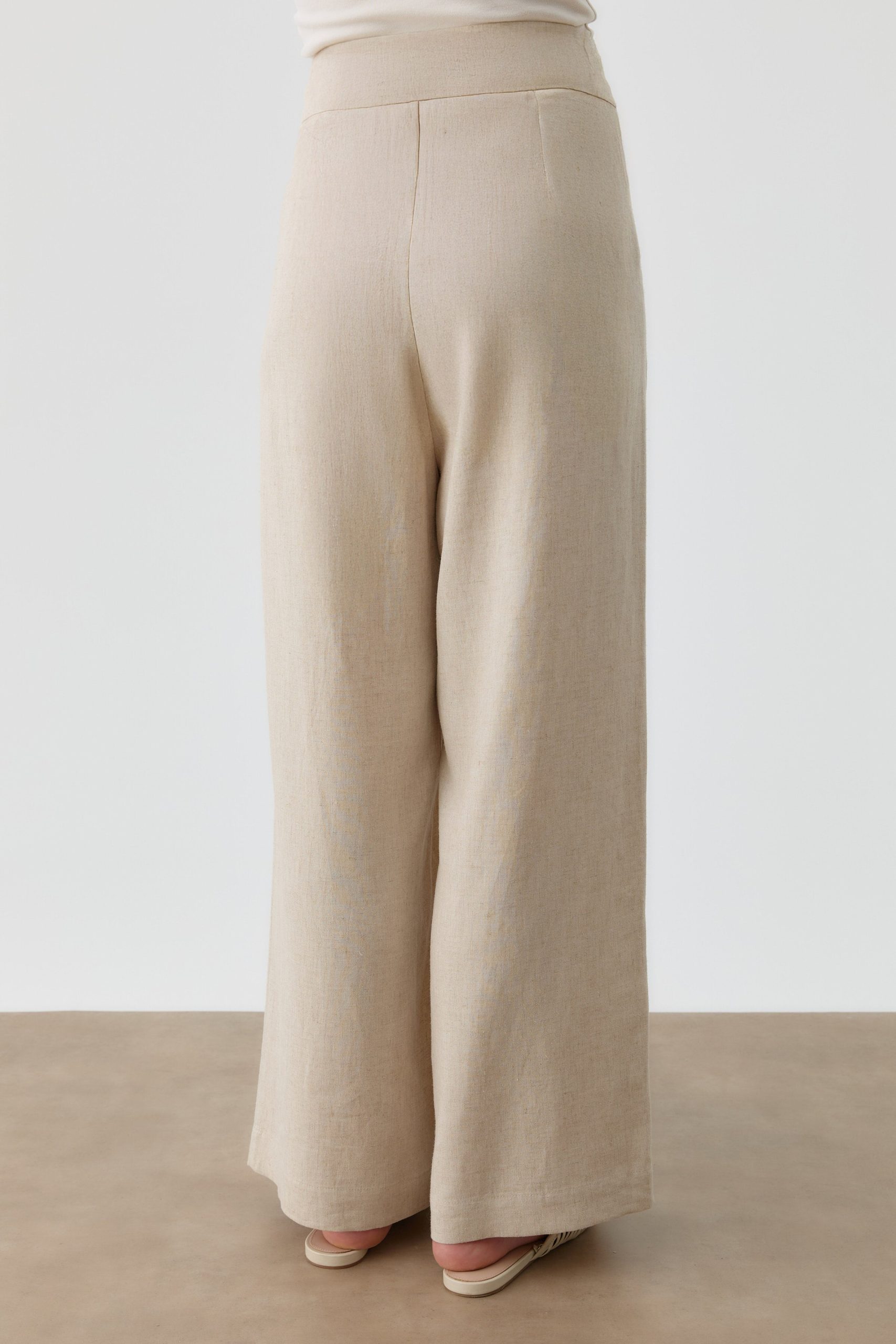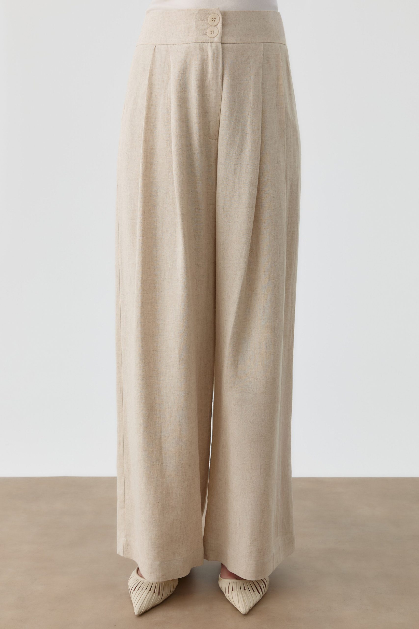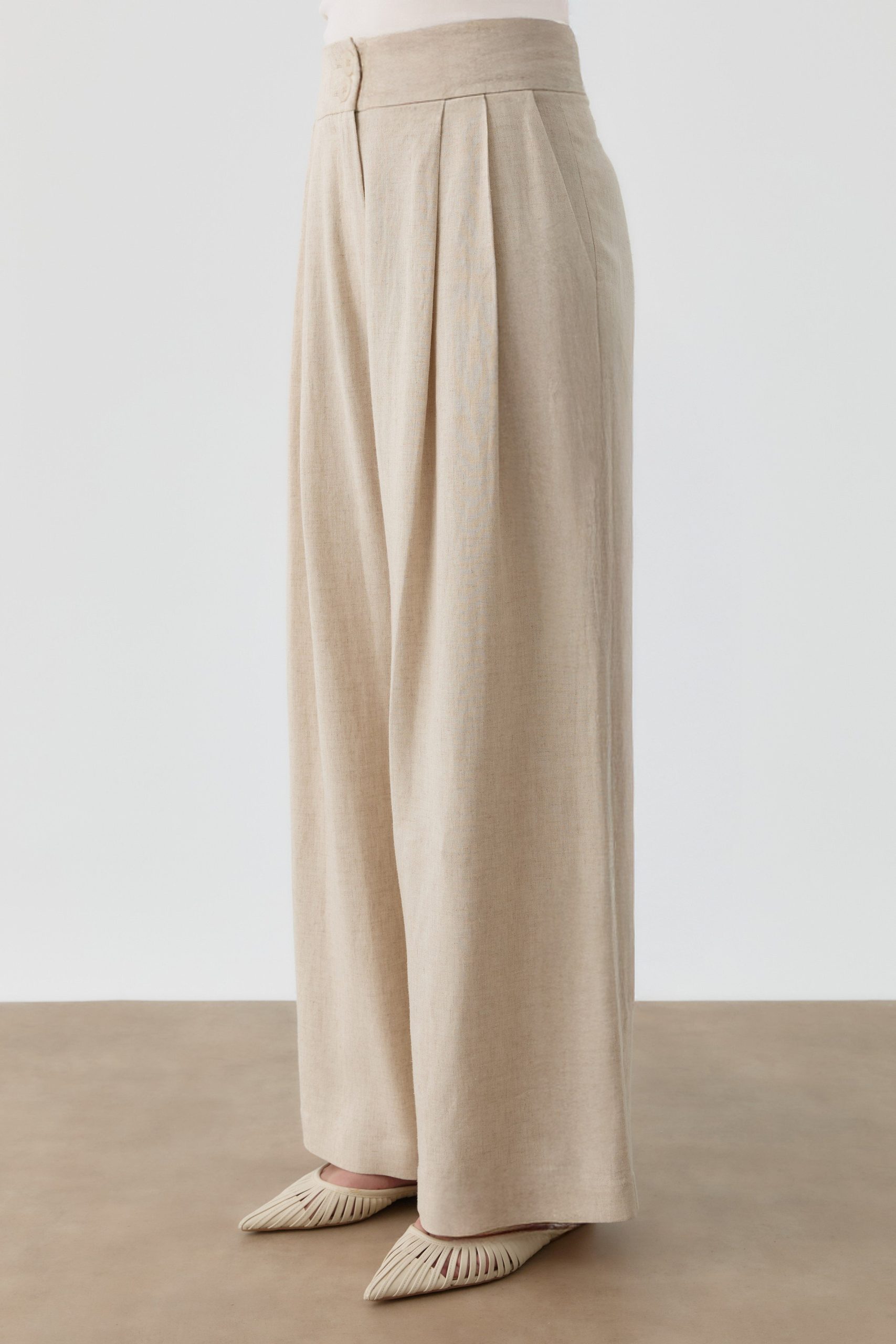 Pileli Keten Pantolon – Bej