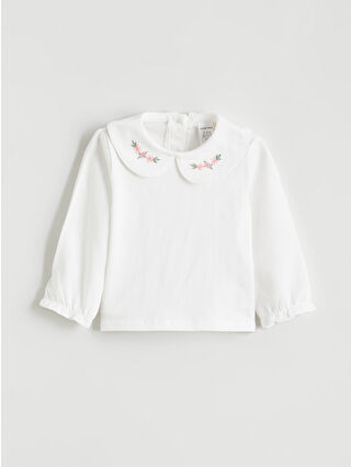 Bow Detail Cotton Long Sleeve Oversize Baby Collar Shirt