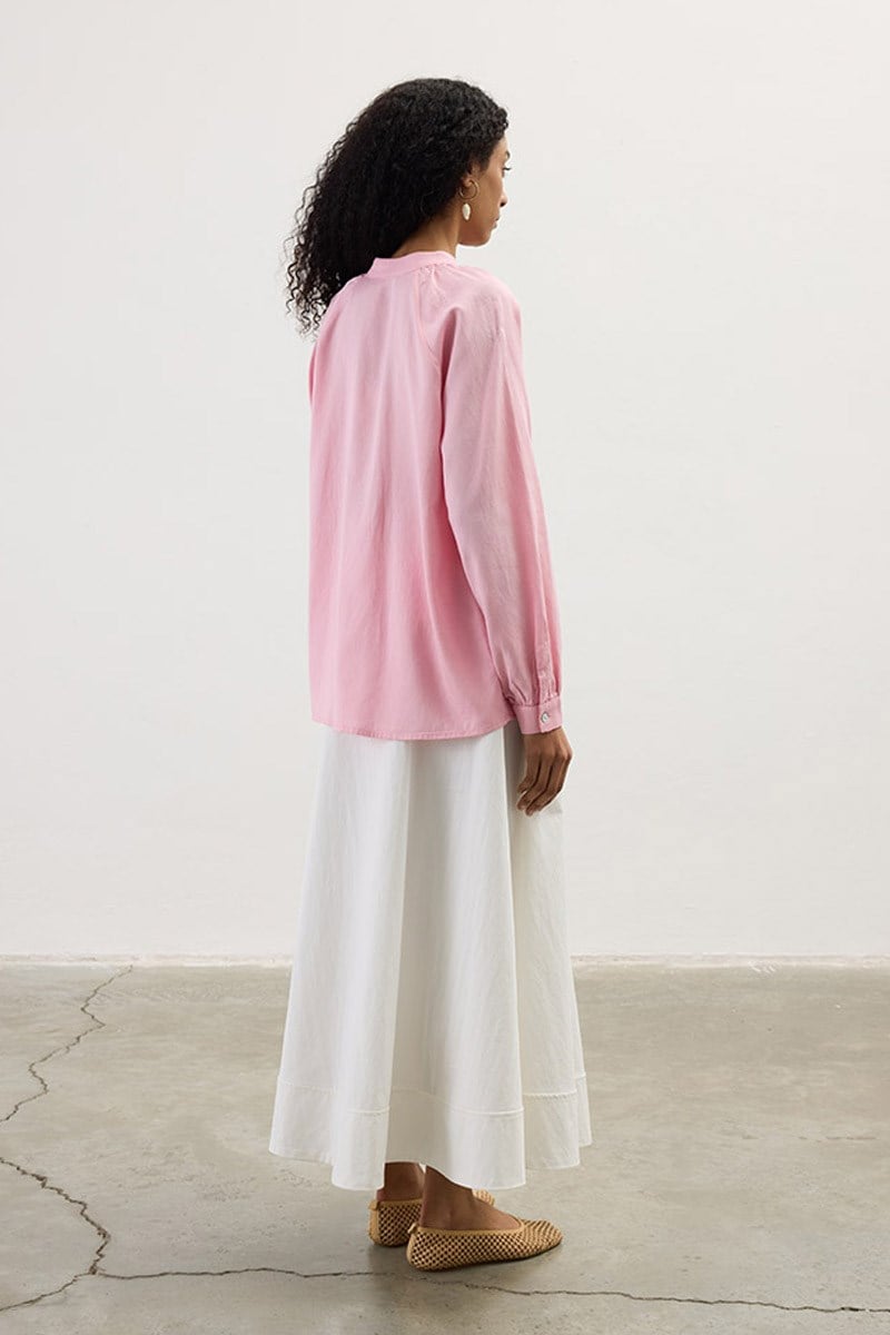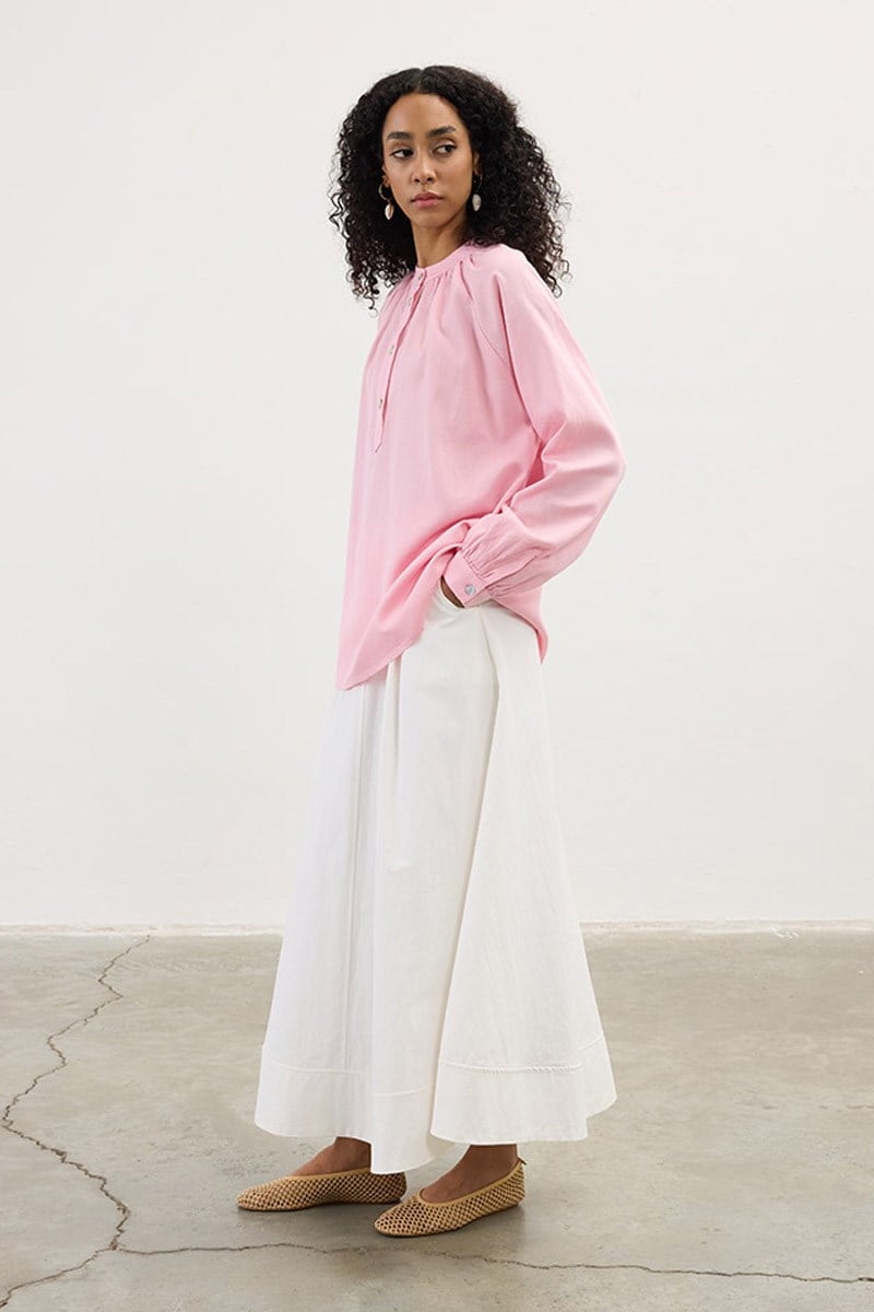Pink Linen Blouse with Gather Details