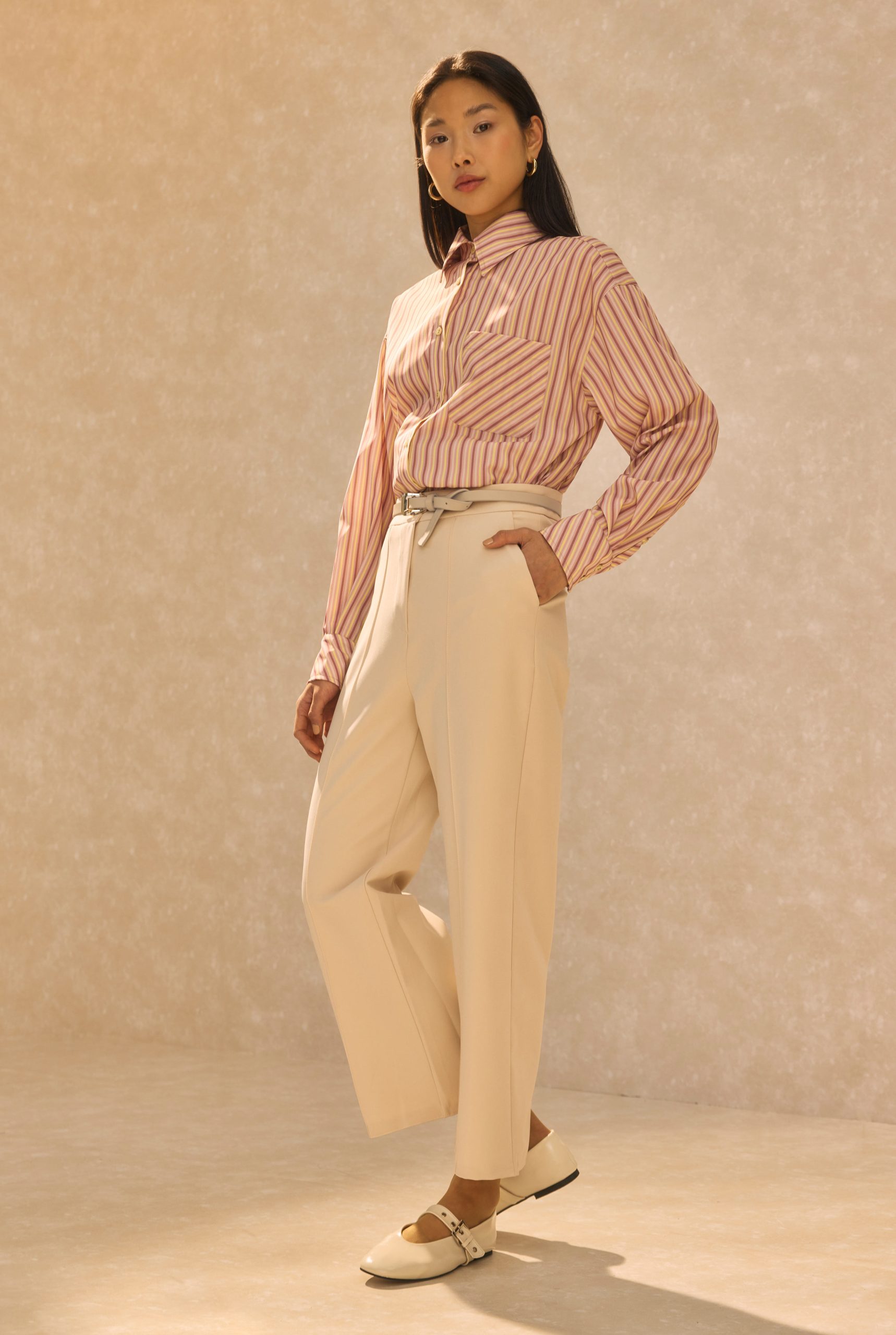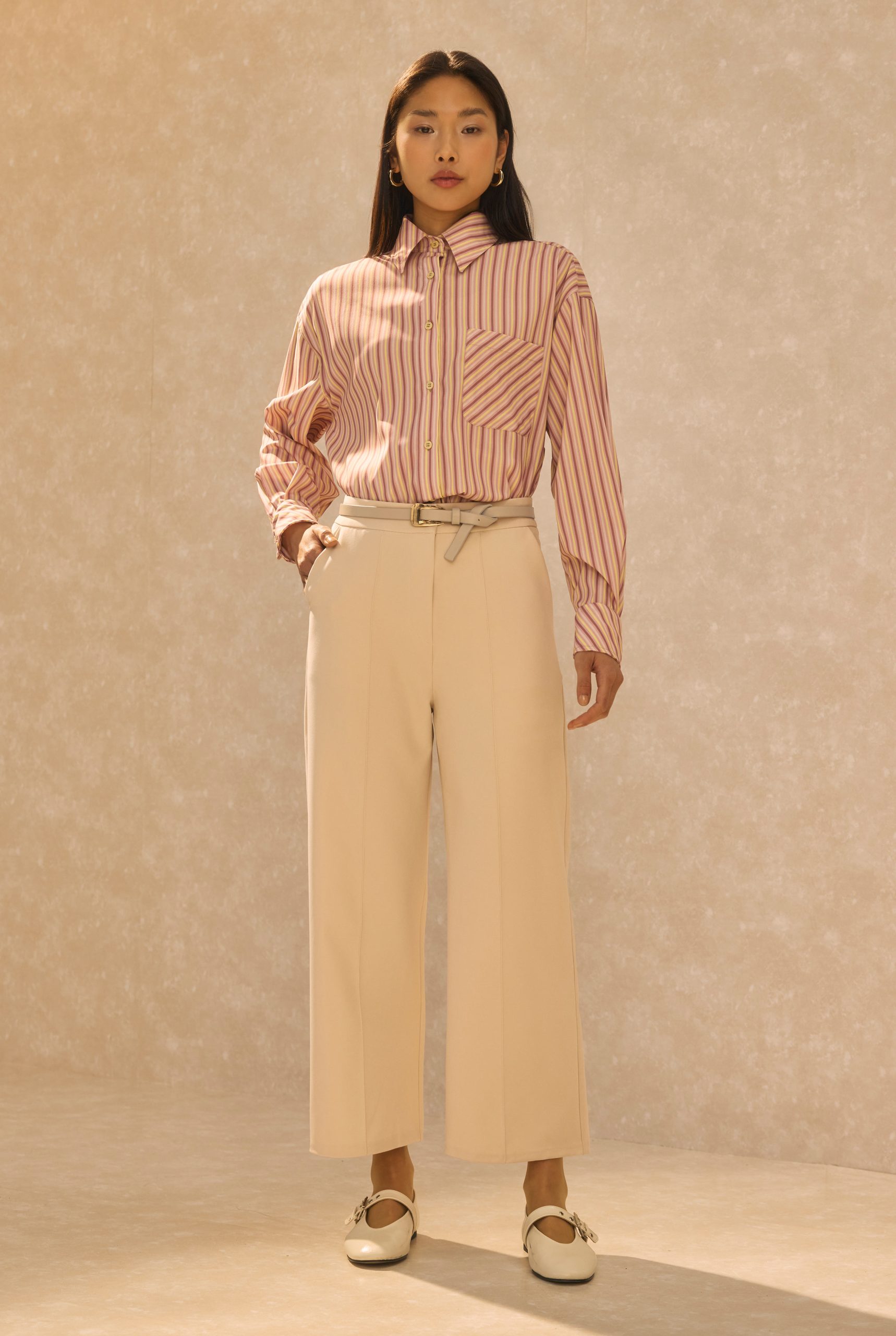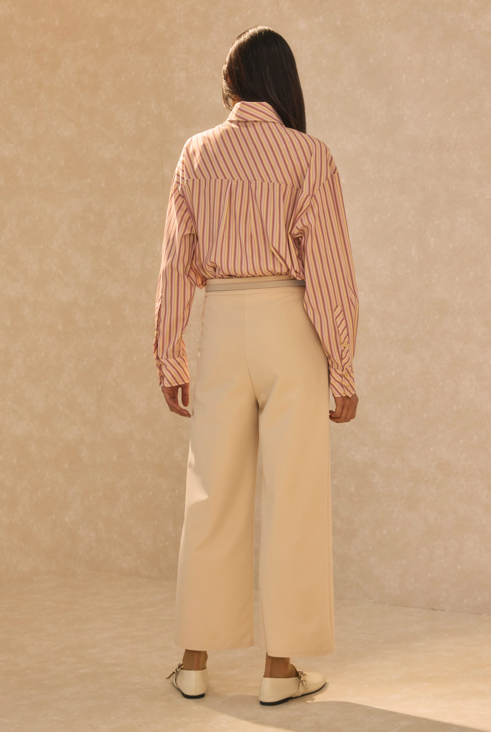 Pintuck Detailed Midi Trousers Beige