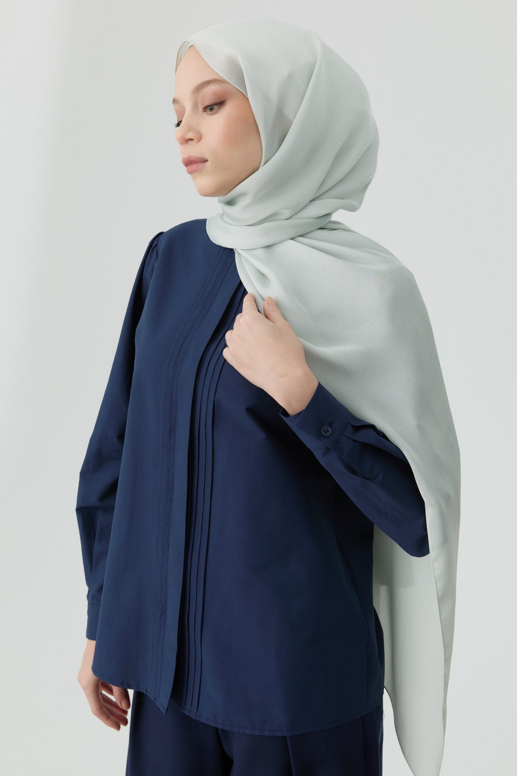 Pintuck Detailed Shirt – Navy Blue