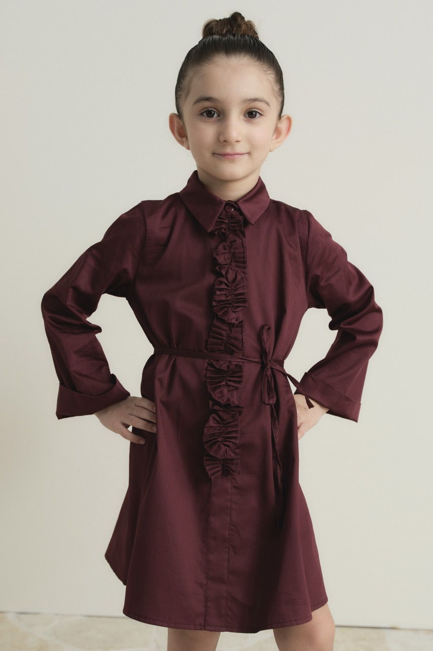 Be the first to review “Pleated Detail Compact Satin Cotton Children’s Dress – Burgundy” Cancel reply