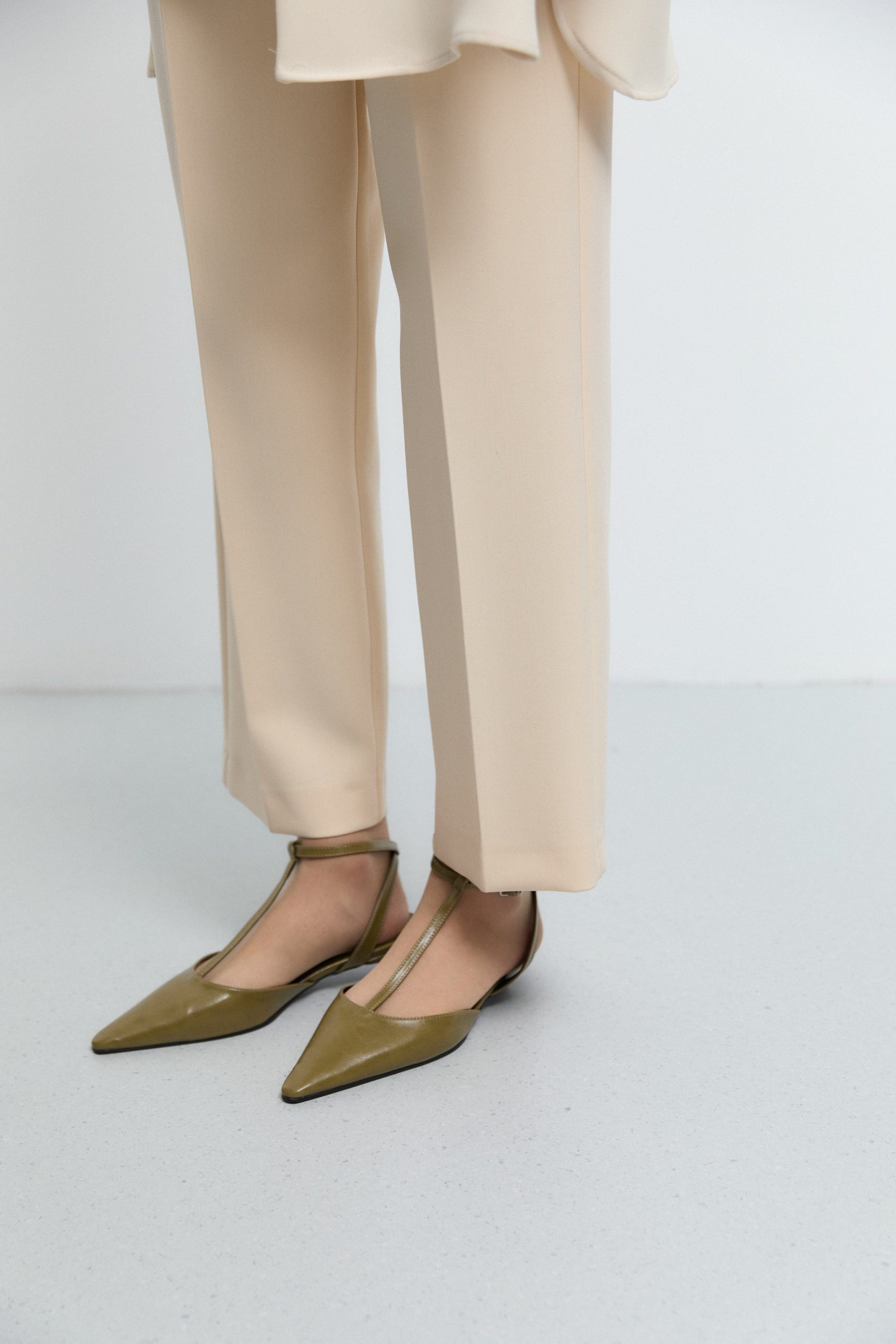 Pleated Detail Trousers with Elastic Waistband – Khaki