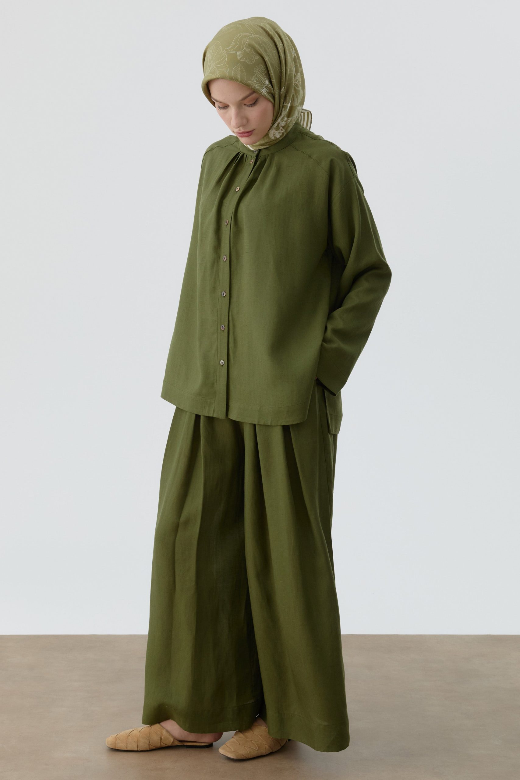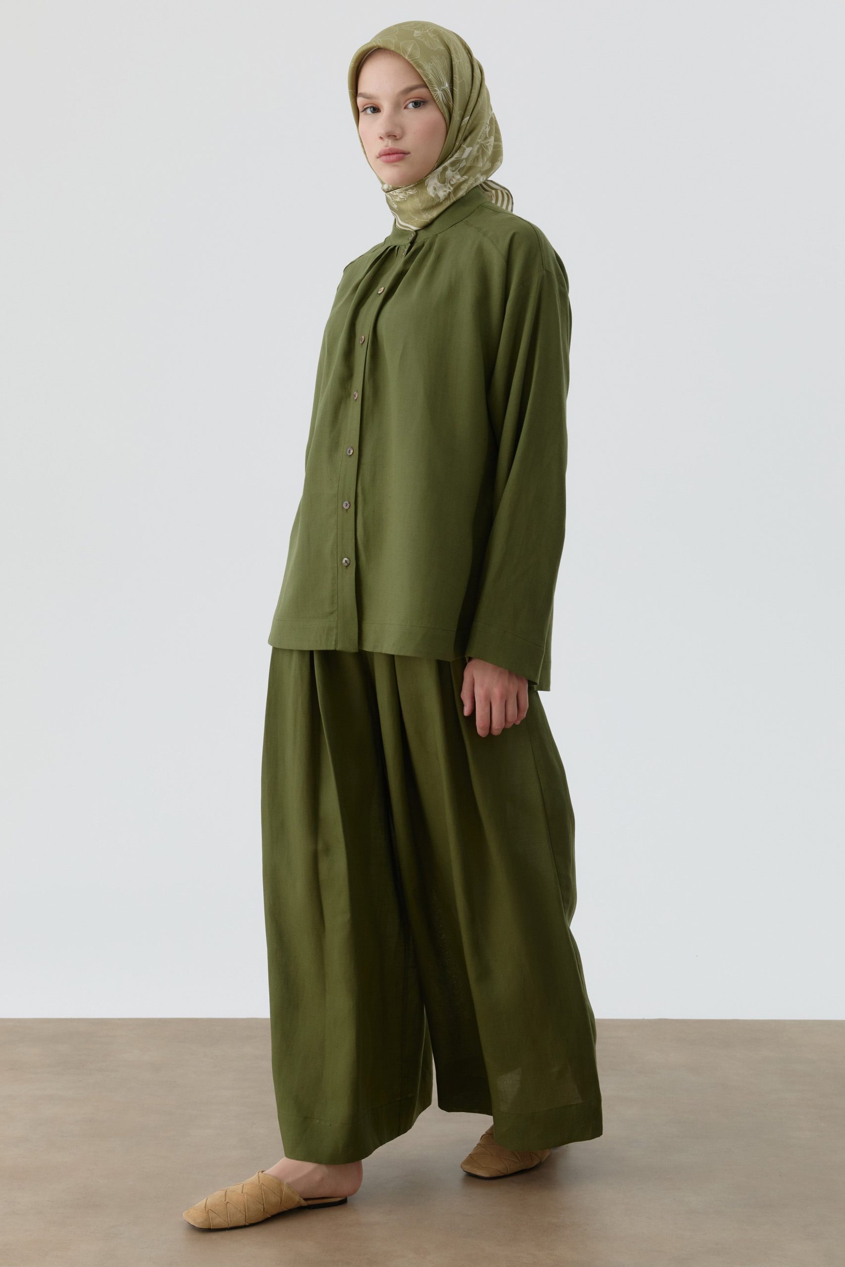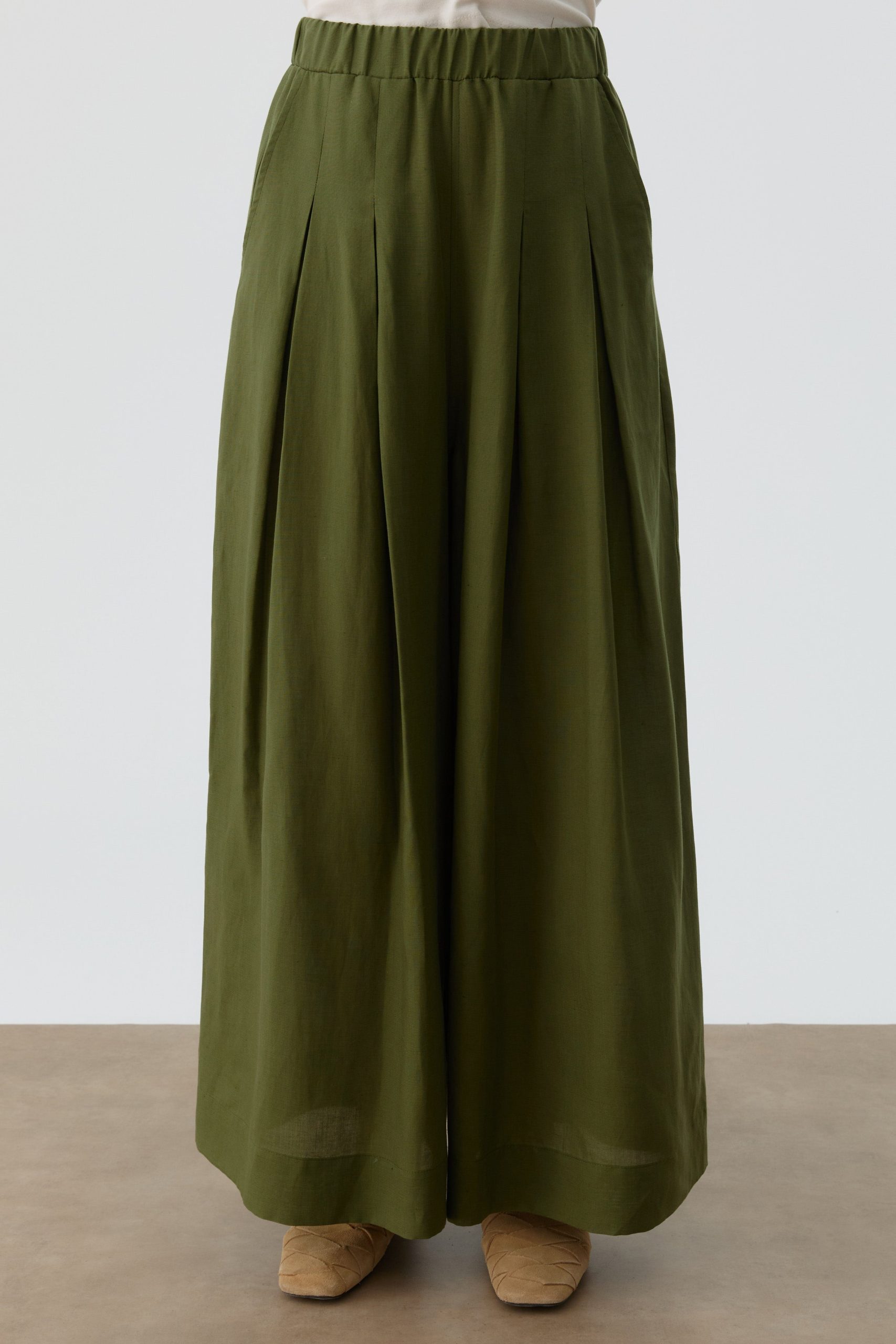 Pleated Detail Trousers with Elastic Waistband – Khaki