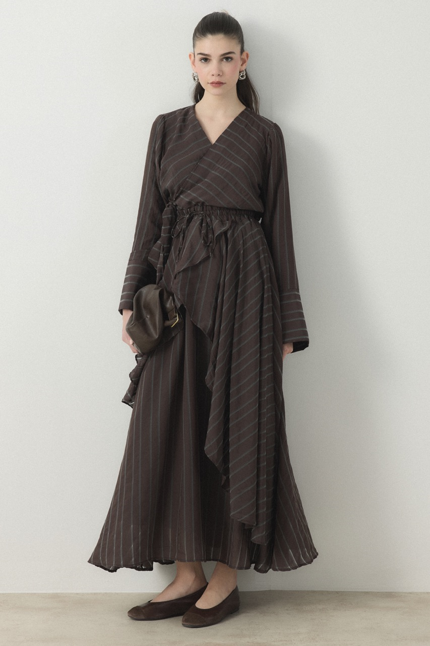 A sophisticated pleated striped skirt set in a rich bitter coffee hue, offering timeless elegance and versatile style for modern fashion enthusiasts.