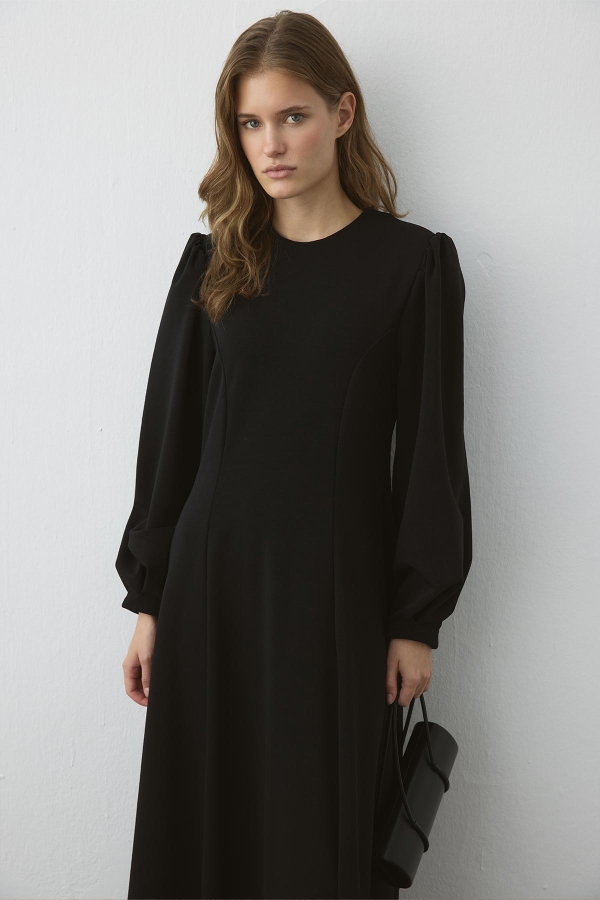 Premium Black Dress with Waist Seam Detail