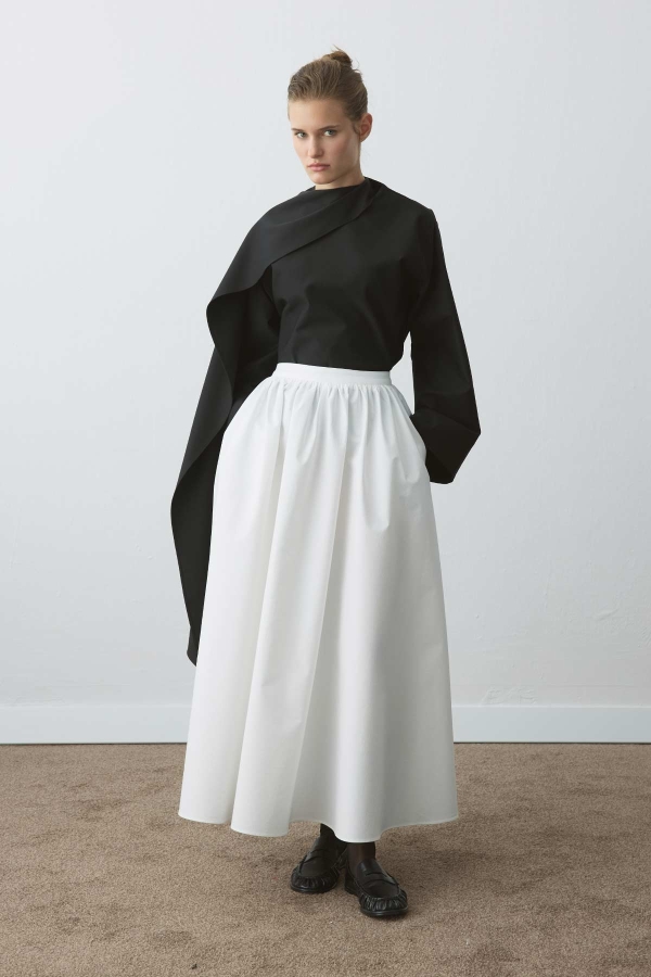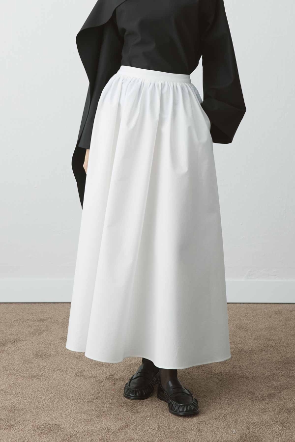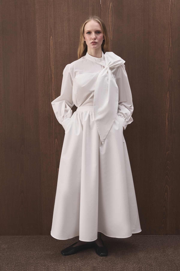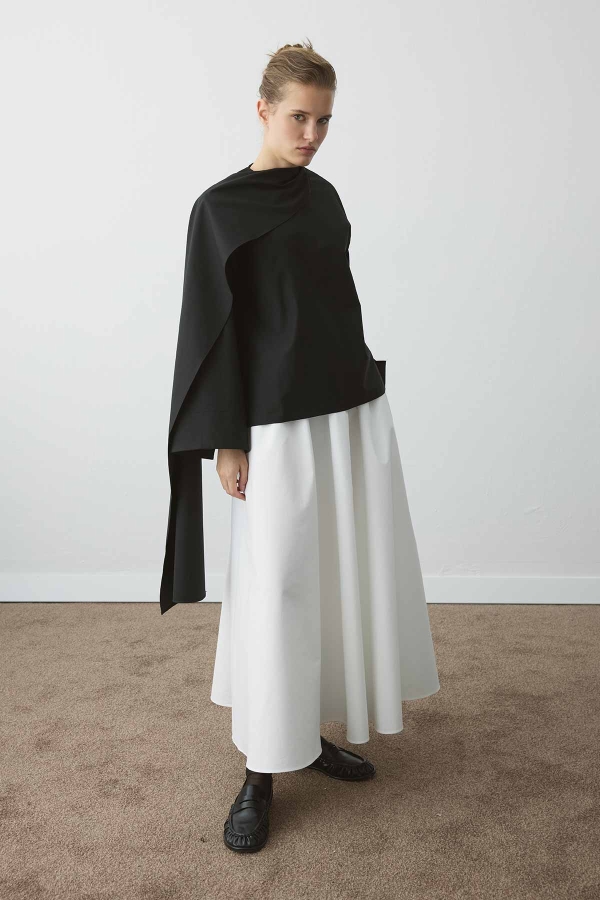 Yüksek Bel Bağcıklı Geniş Form Kloş Etek Ekru