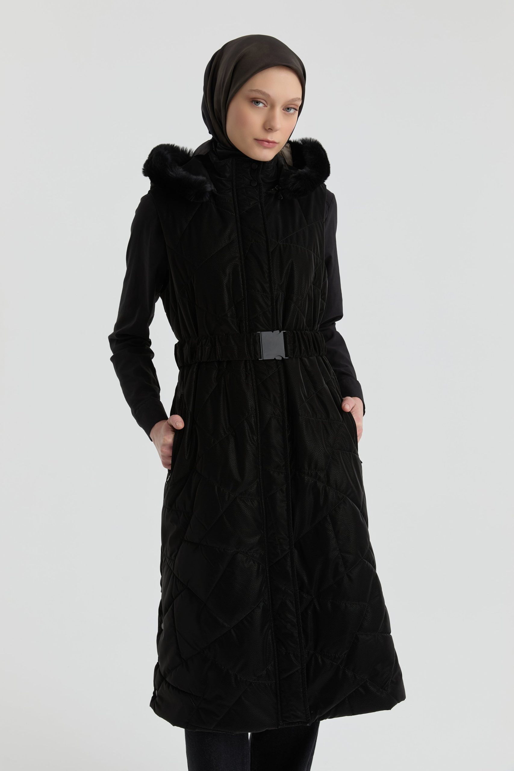 Tags: black vest, cracked glass pattern, modern style, quilted vest, sleeveless vest, urban fashion, women's outerwear