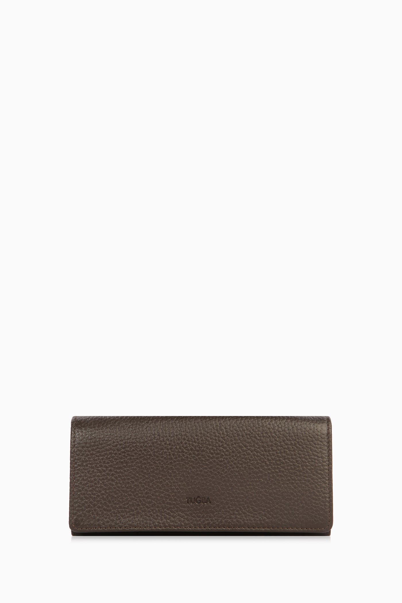 This wallet stands out with its rectangular shape and quality leather texture, while its organized interior structure makes daily use practical.