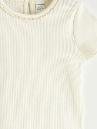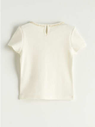 Girls’ Bicycle Neck Slim Fit Heart Stone Detailed Ruffle Cotton Short Sleeve Crop Blouse