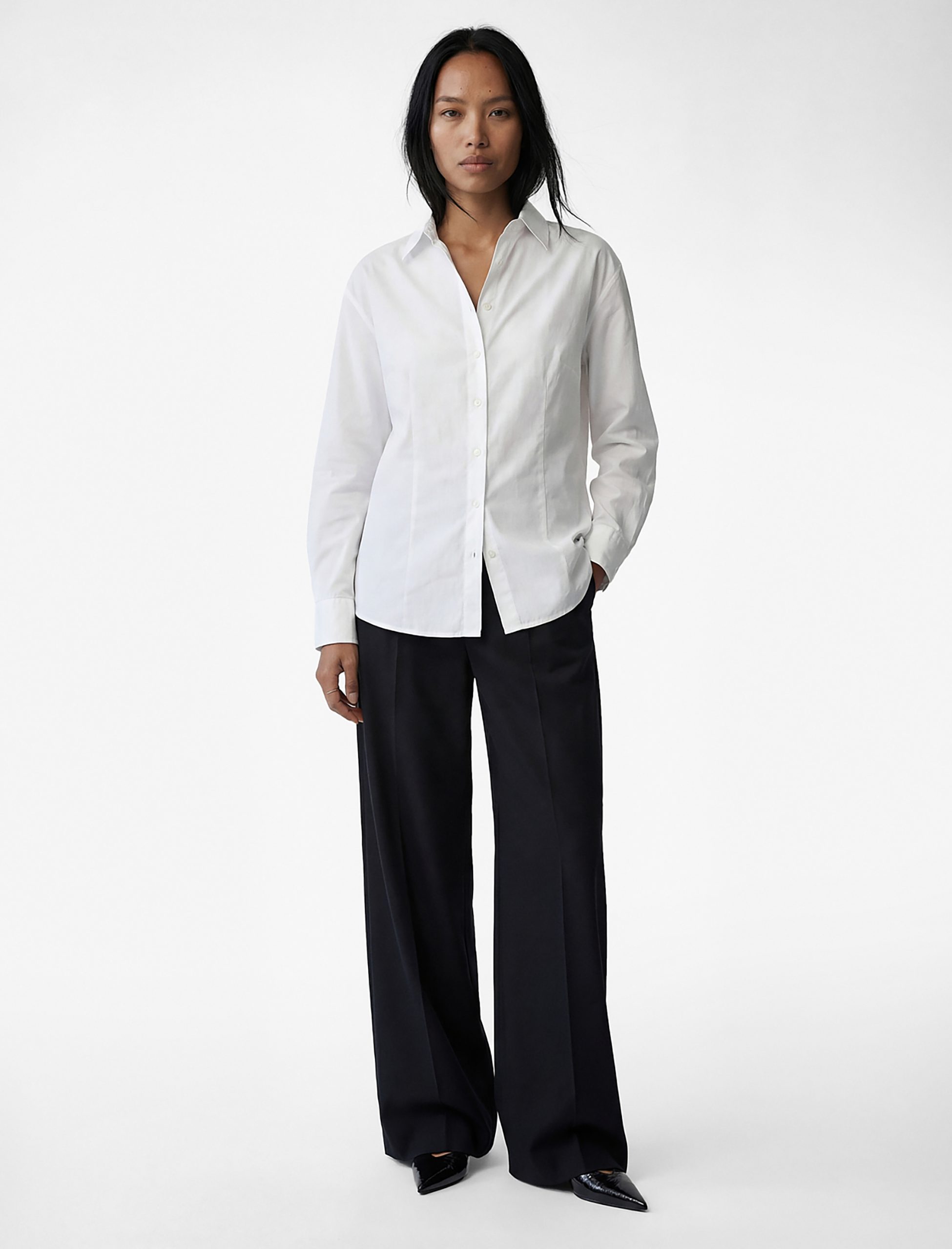You can highlight your elegance on work days by combining the shirt with high-waisted fabric pants and an elegant skirt. You can achieve a modern office style by completing it with high-heeled shoes and minimal accessories. For your daily elegance, you can create a more comfortable style by completing it with basic jeans and sneaker shoes. You can enrich your combination with a minimal bag and a simple wristwatch.