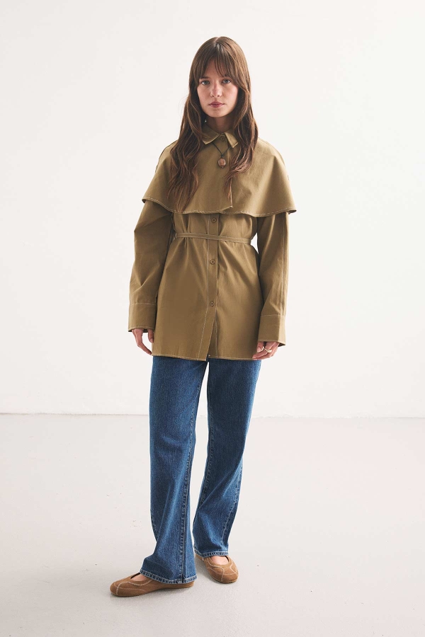 Removable Cape Collar Olive Shirt