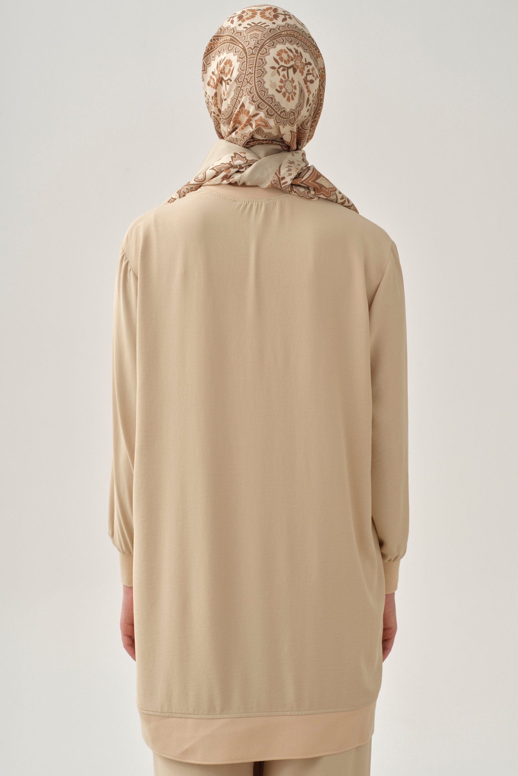 This tunic, notable for its modern cut details and ribbed texture, is a bold piece for sporty elegance. Its comfortable fit makes it suitable for daily wear.
