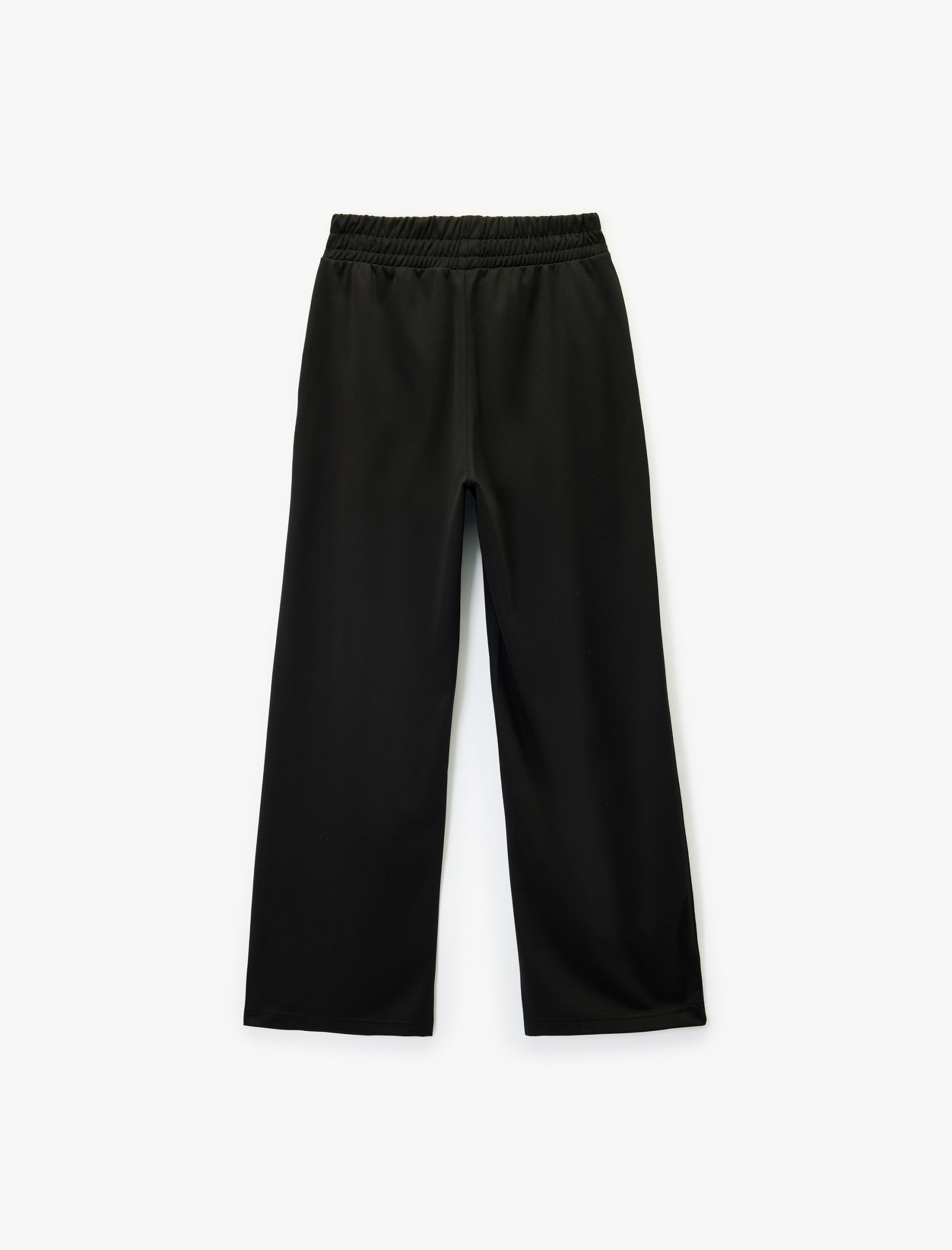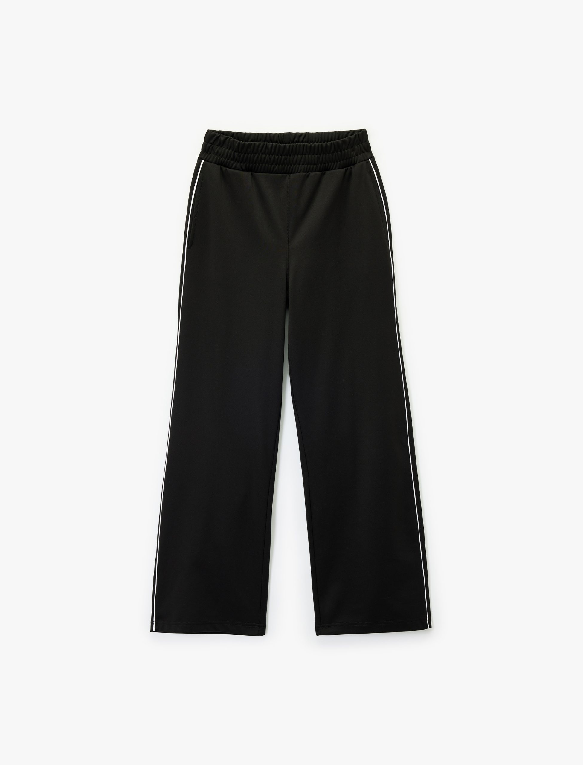 Ribbed Waist Elastic Wide-Leg Sport Sweatpants