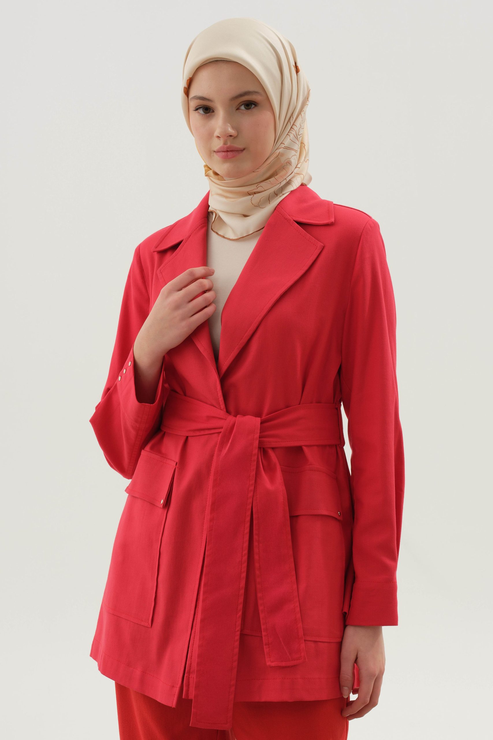 Be the first to review “Rivet Detailed Belted Jacket – Red” Cancel reply