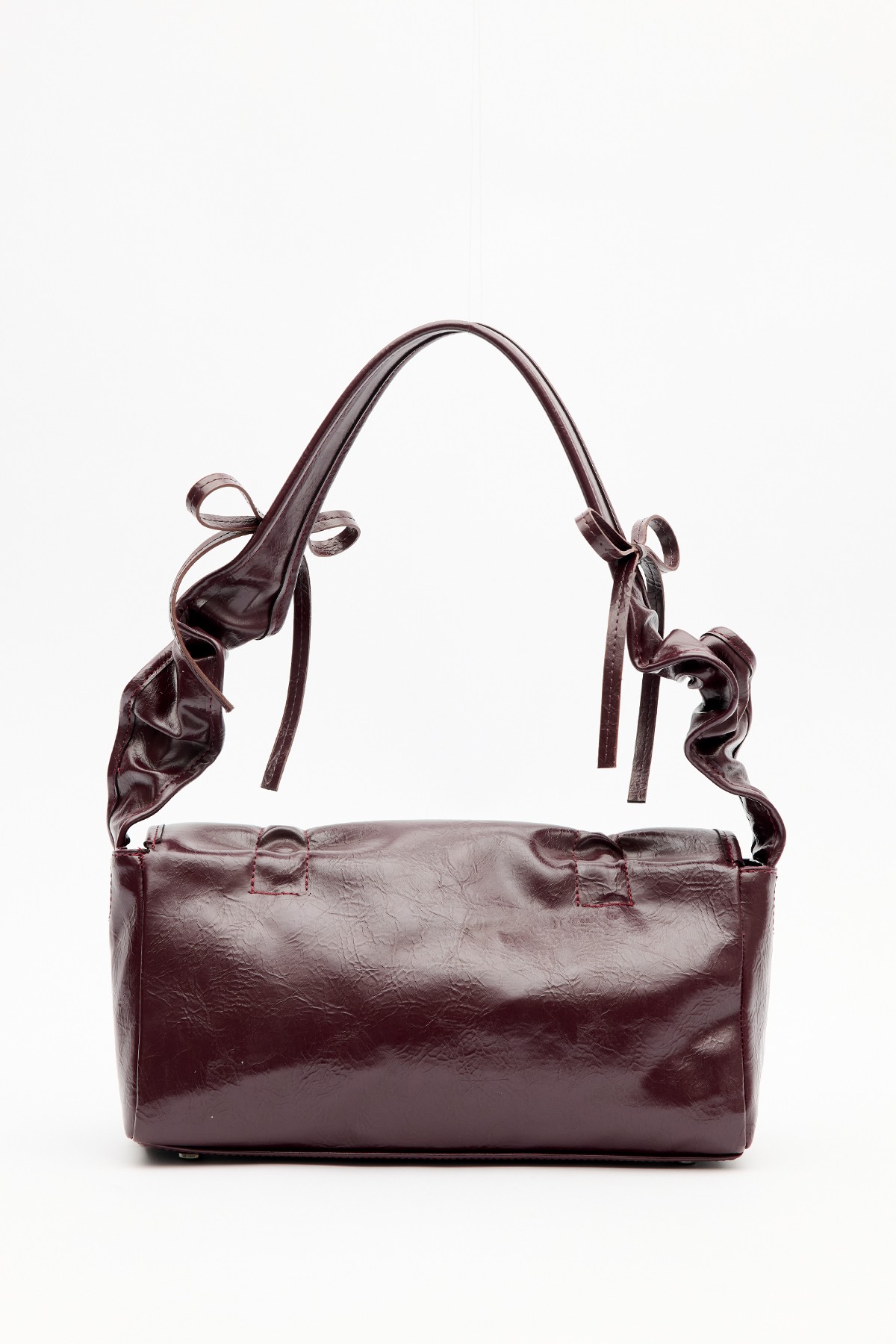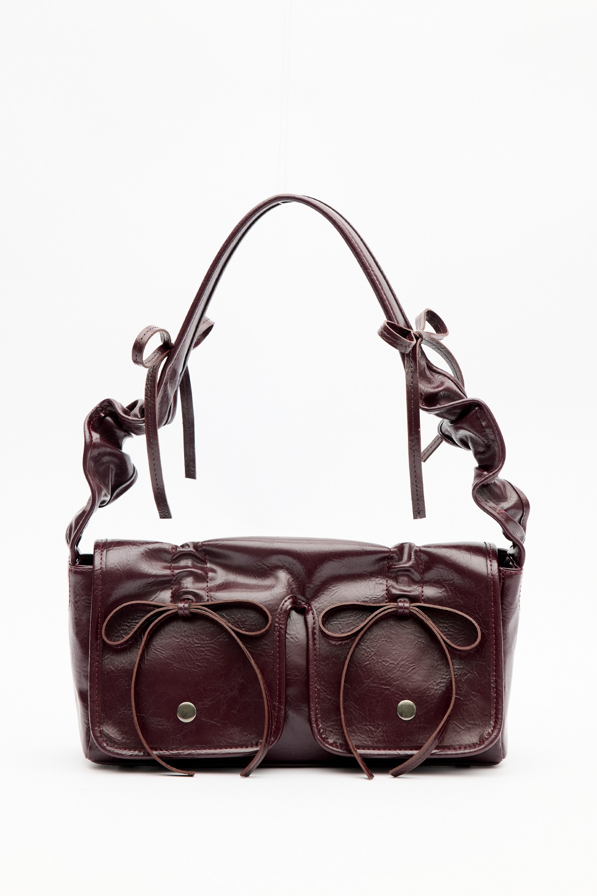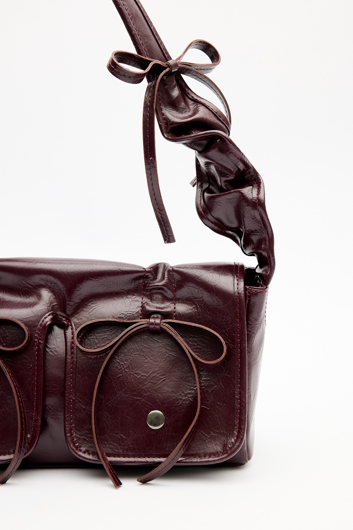 Tags: Bag, burgundy, faux leather, magnetic closure, medium size, ribbon detail