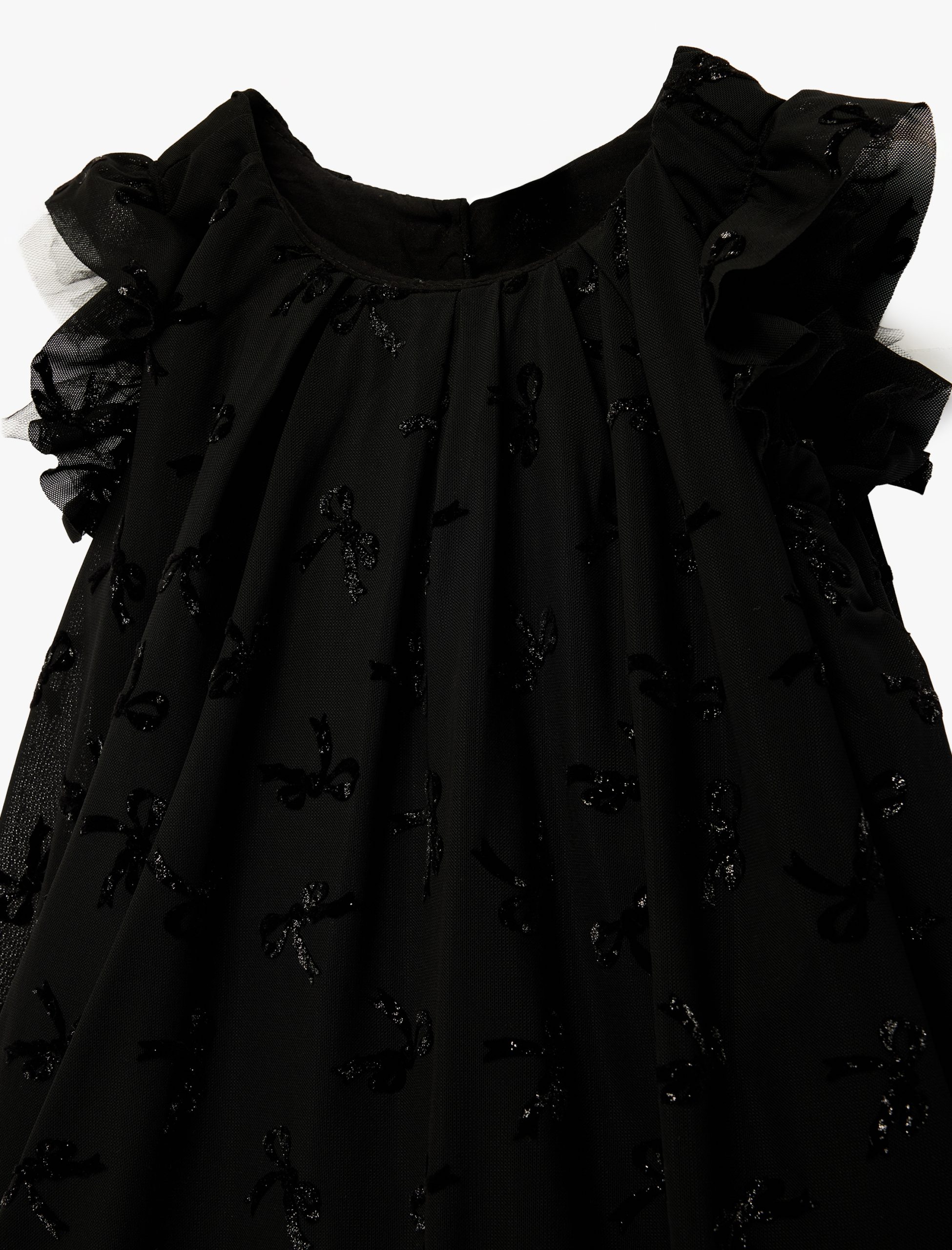 Ruffle and Bow Detail Bicycle Collar Tulle Dress