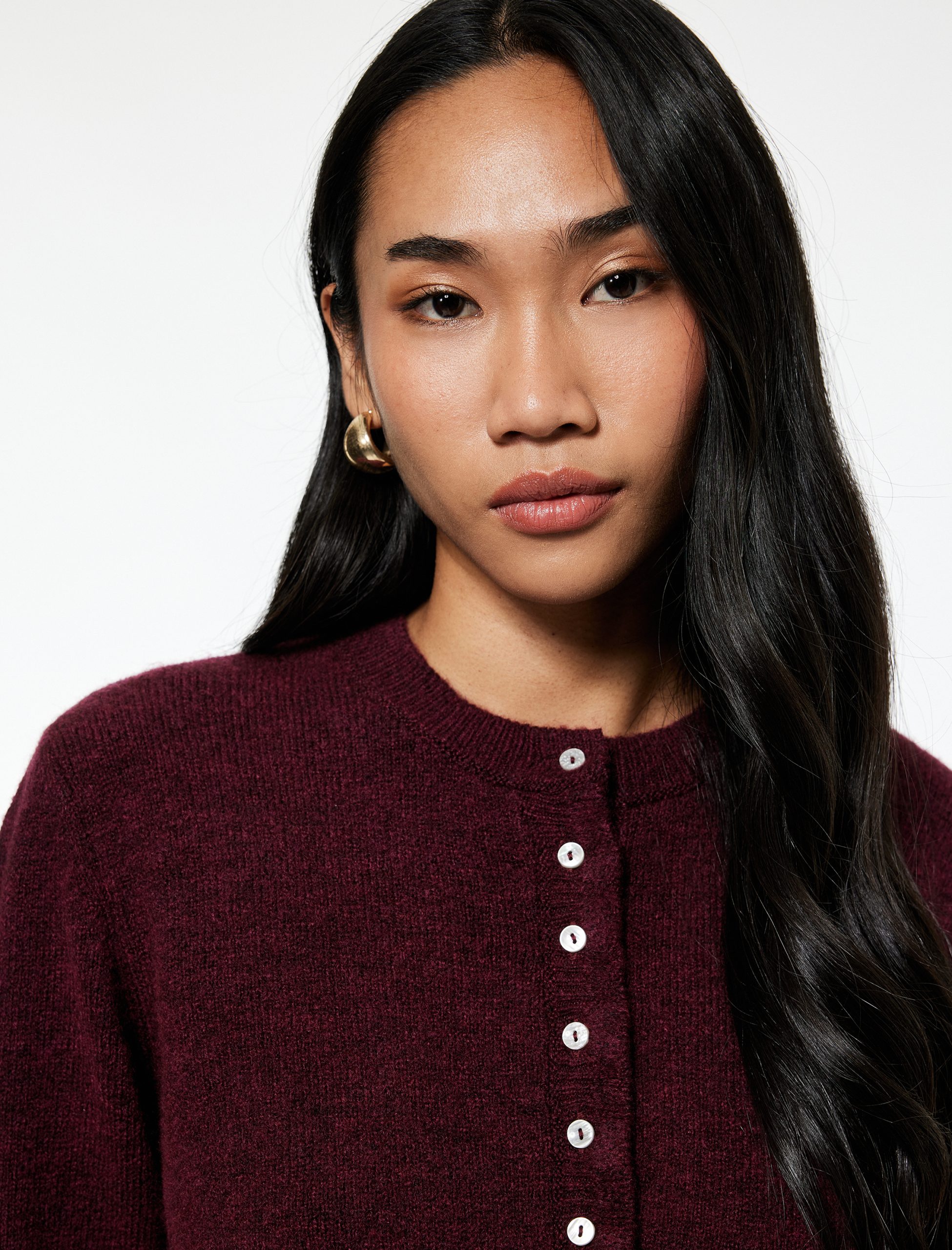 Pair this knit cardigan with slim-fit jeans and a basic t-shirt to highlight your elegance. Complete the look with boots and a minimalist bag to add a sophisticated touch to your daily style. For office days, combine it with a pleated skirt and heels to achieve a polished appearance.