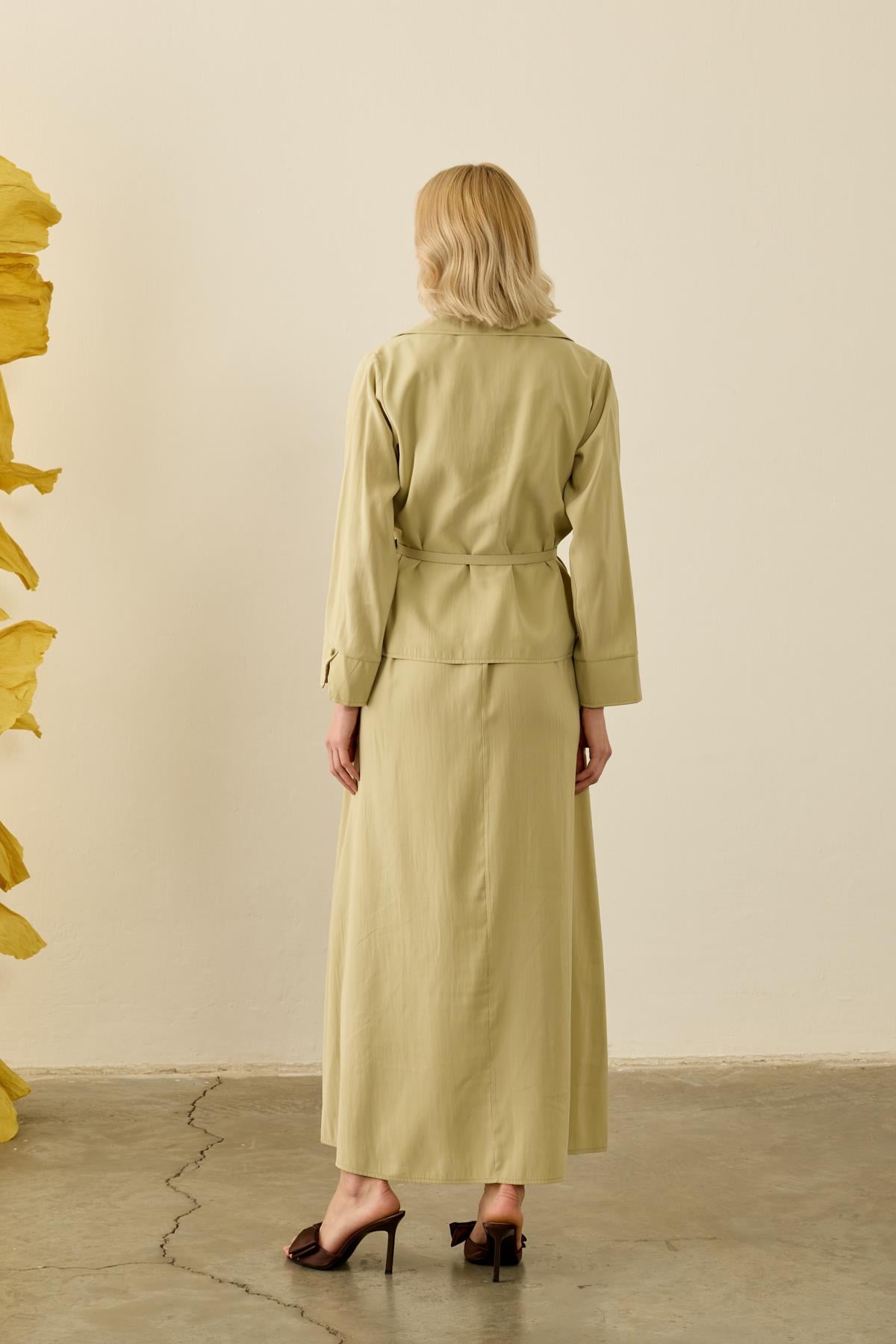 Keten Tensel Elbise Haki