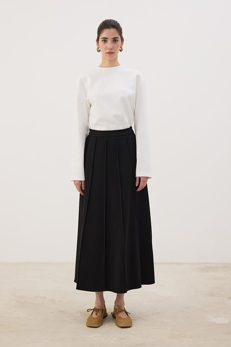 Seamed Gabardine Skirt in Black