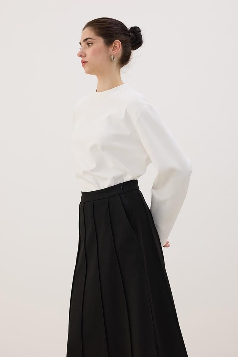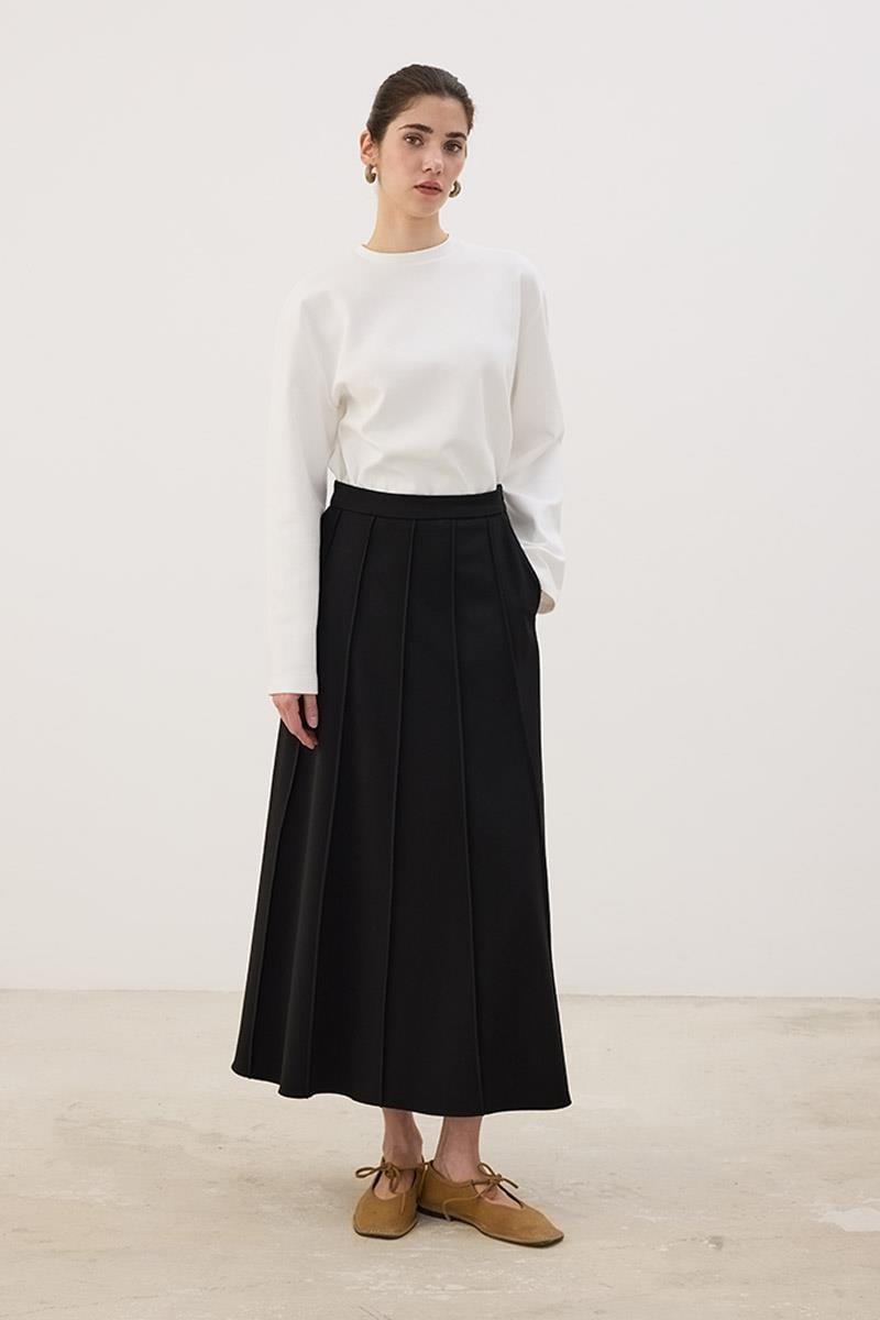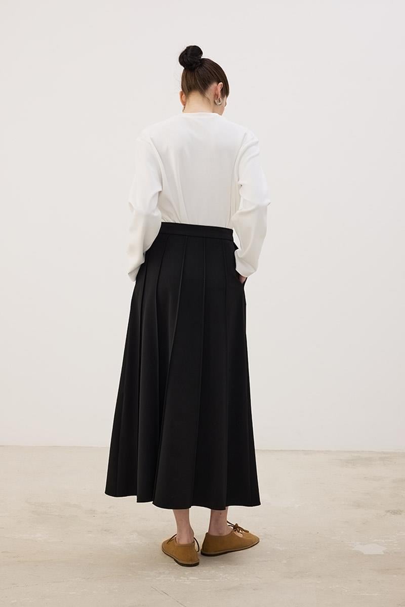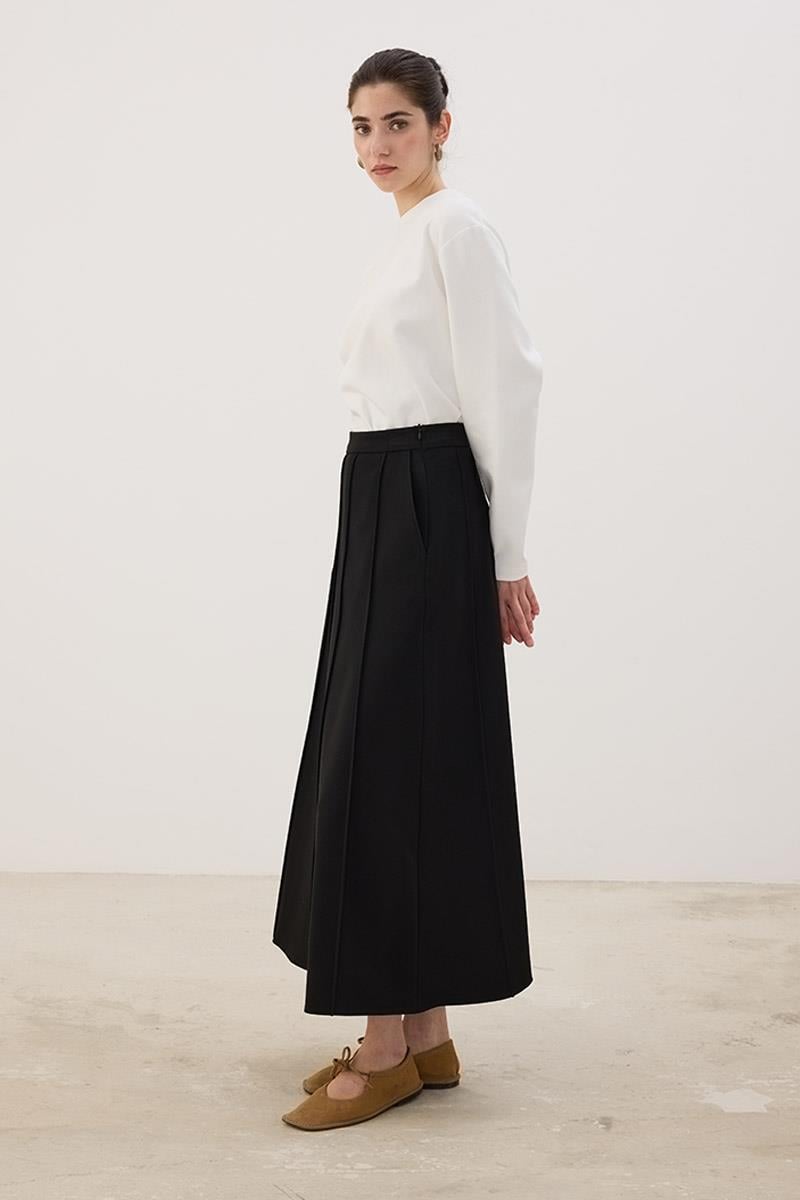 Tags: black skirt, gabardine skirt, polyester viscose skirt, regular fit, seamed skirt, women's skirt