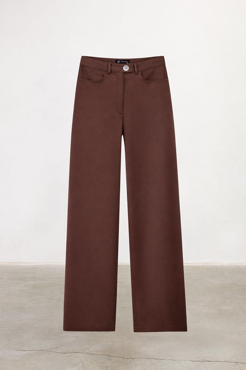 Sedef Düğmeli Pamuk Pantolon Kahverengi