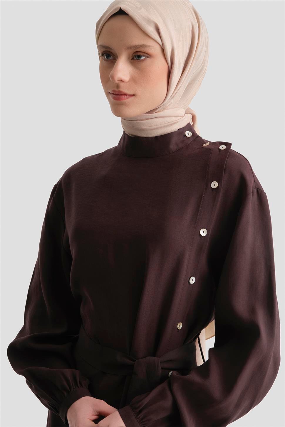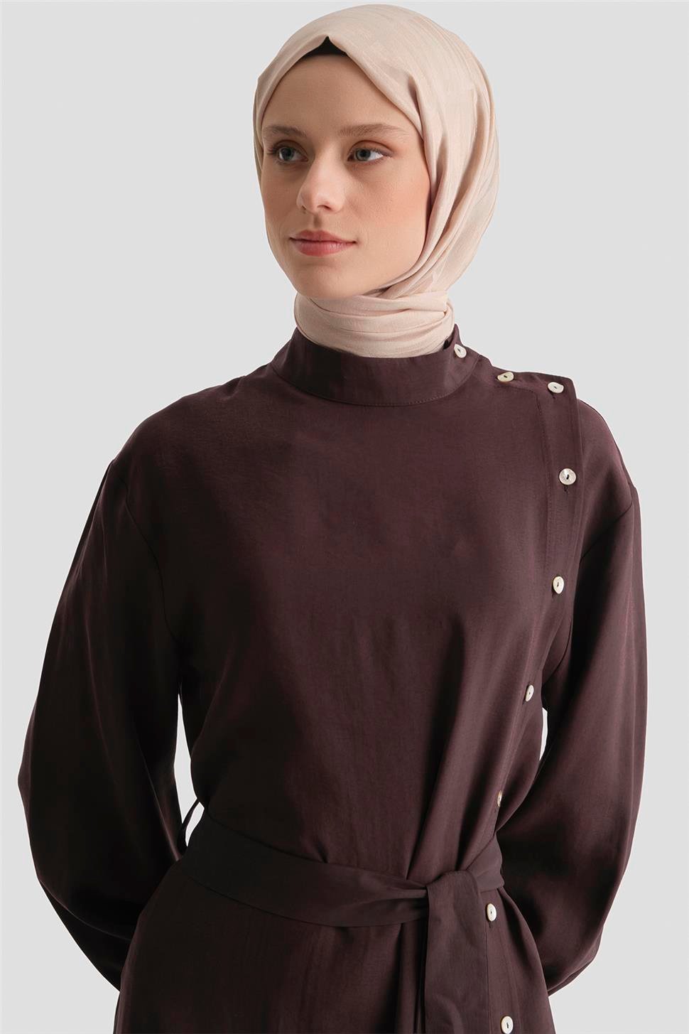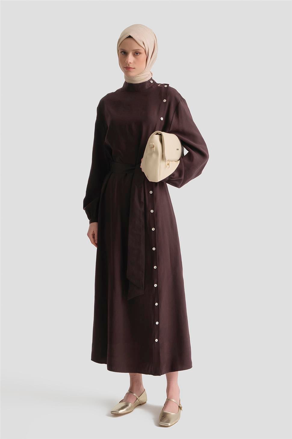 Sedefli Modal Elbise Acı Kahve