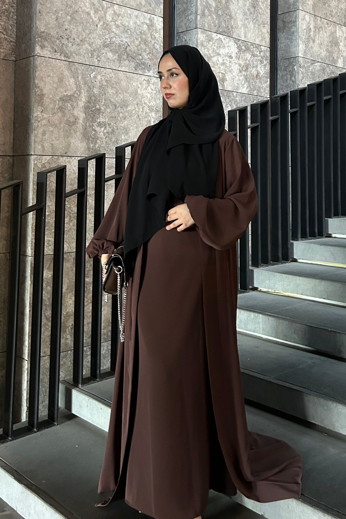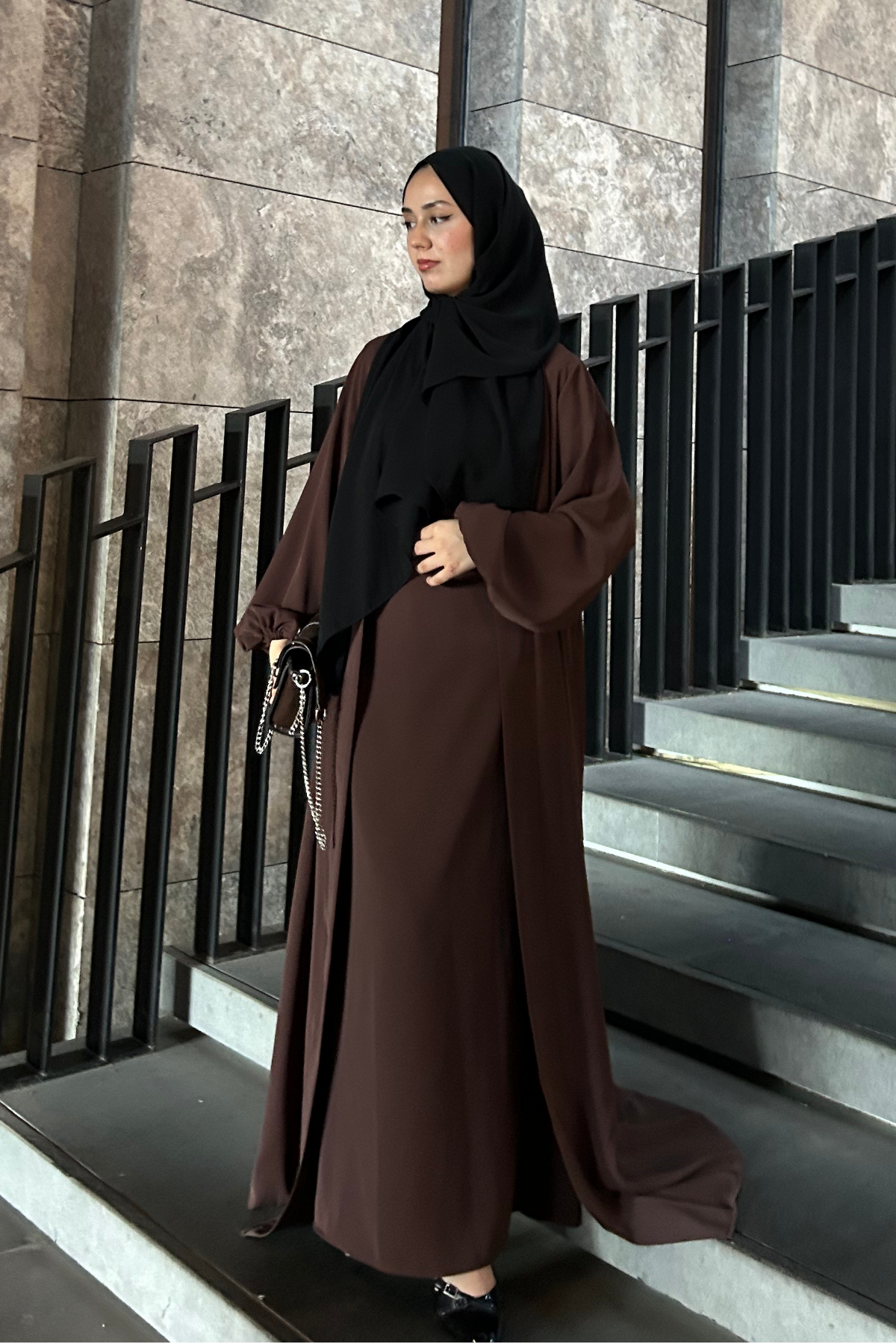 A special design for those seeking an elegant and modern style. This comfortable, chic, and non-transparent two-piece abaya set features soft, flowing Santiago fabric. Features: Premium Santiago polyester fabric, Inner dress and outer abaya made from the same fabric, Comfortable cut, breathable and wrinkle-resistant, Feminine look with balloon sleeve detail, Height: 145 cm – Model: 172 cm, size 38, Color options: Soft and subtle tones, Size Selection (weight-based): 38: 50–59 kg, 40: 60–69 kg, 42: 70–75 kg, 44: 76–84 kg, 46: 85–94 kg, Package Contents: 1 x Inner Dress, 1 x Outer Abaya ✨ Complete two-piece set. No additional pieces needed.