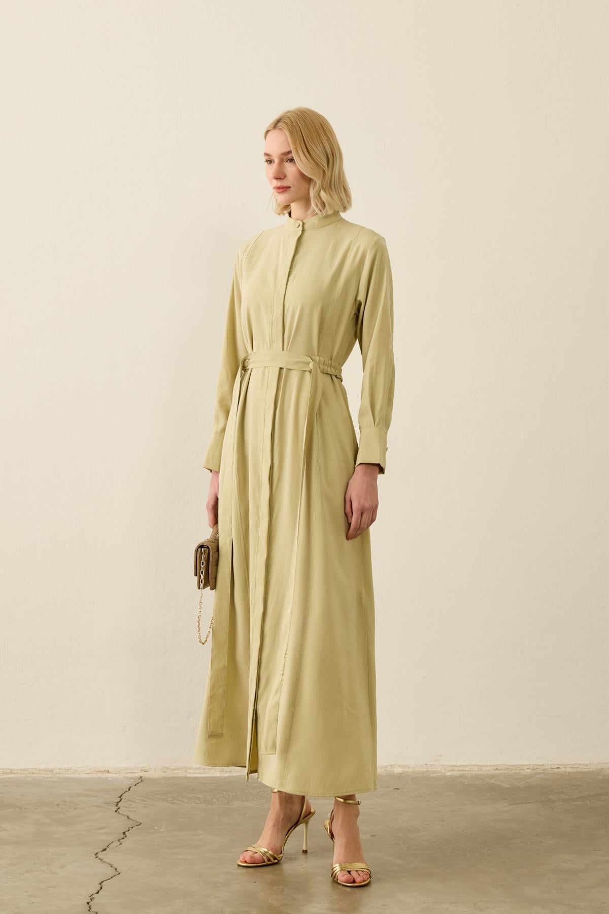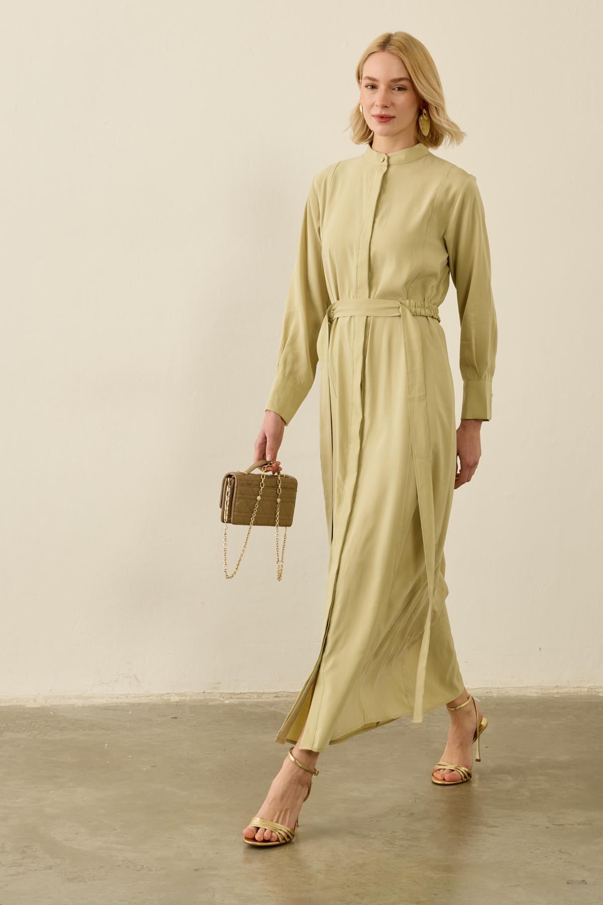 Sevi Hakim Yaka Kemeri Lastikli Modal Elbise ADAÇAYI
