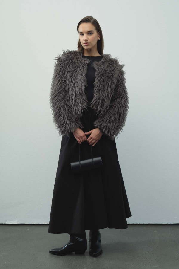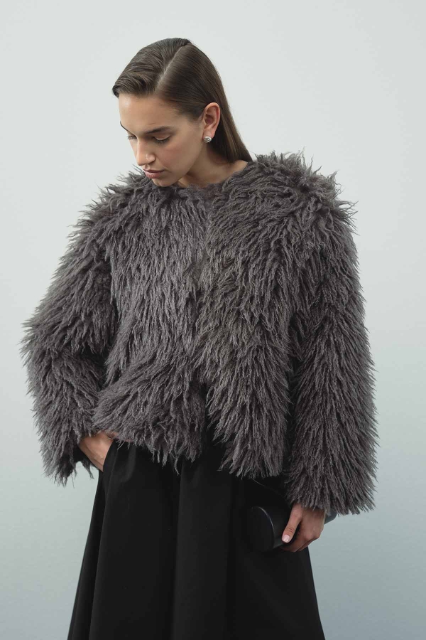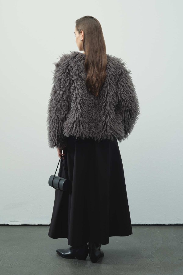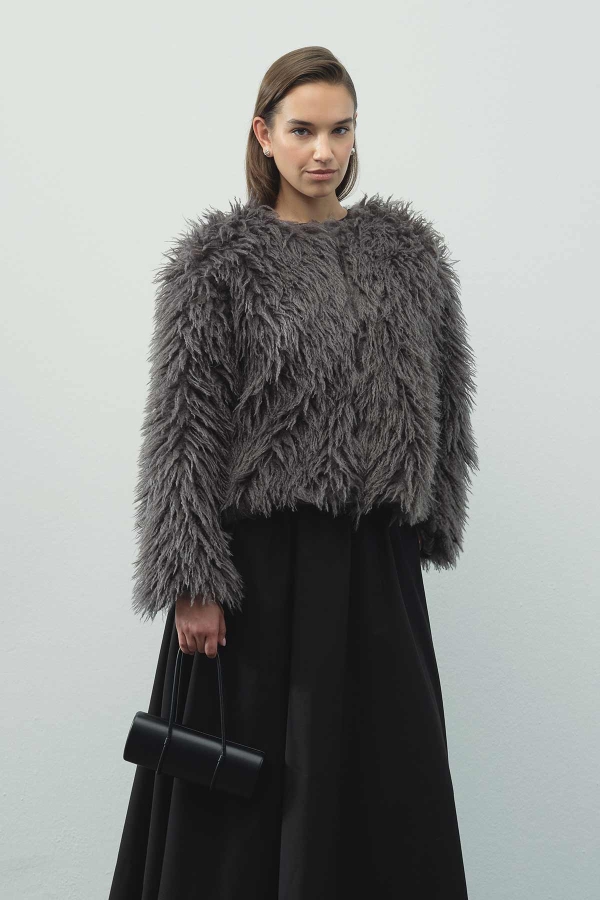 SHORT ANTHRACITE FAUX FUR JACKET FEATURES