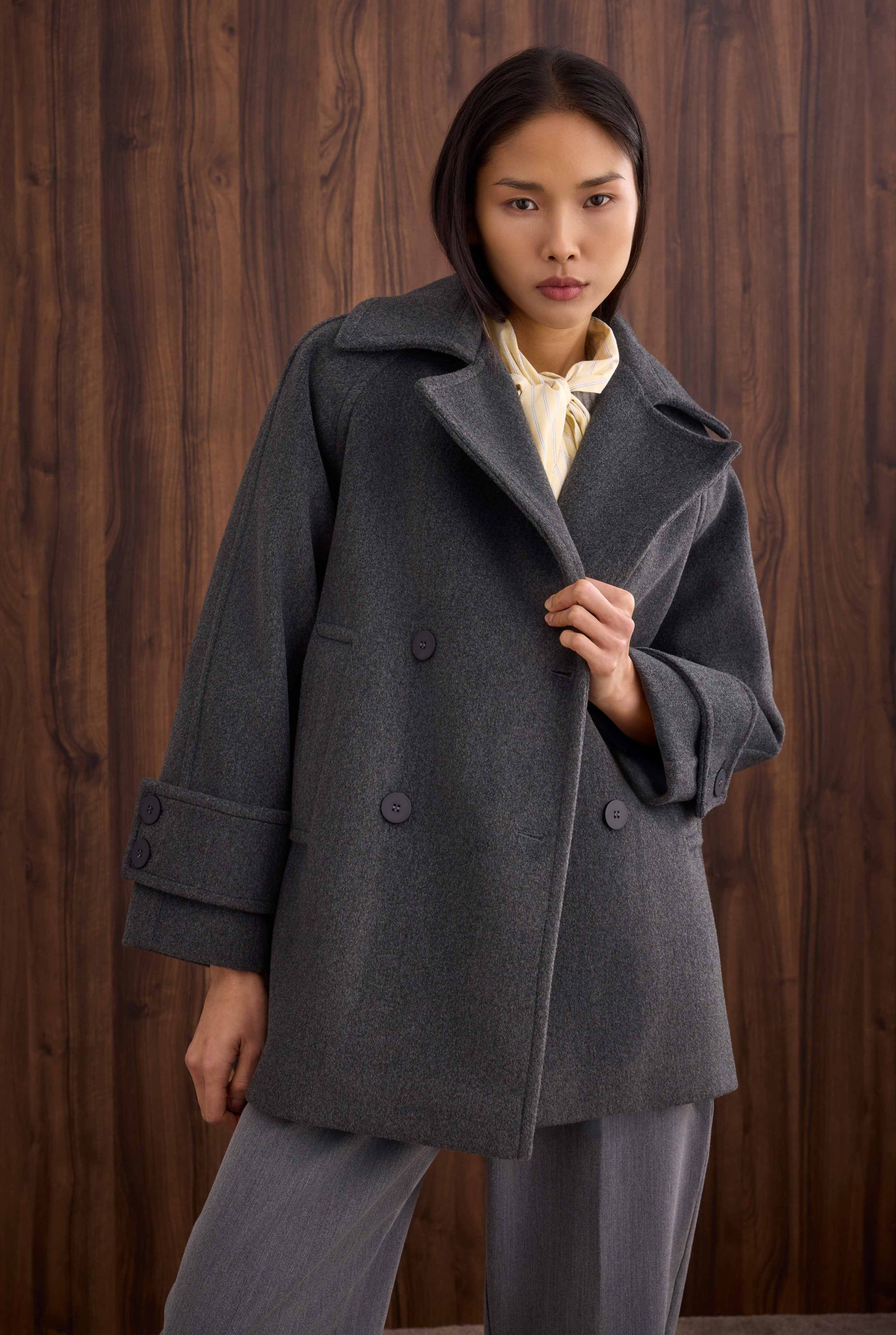 Short Double-Breasted Coat in Anthracite