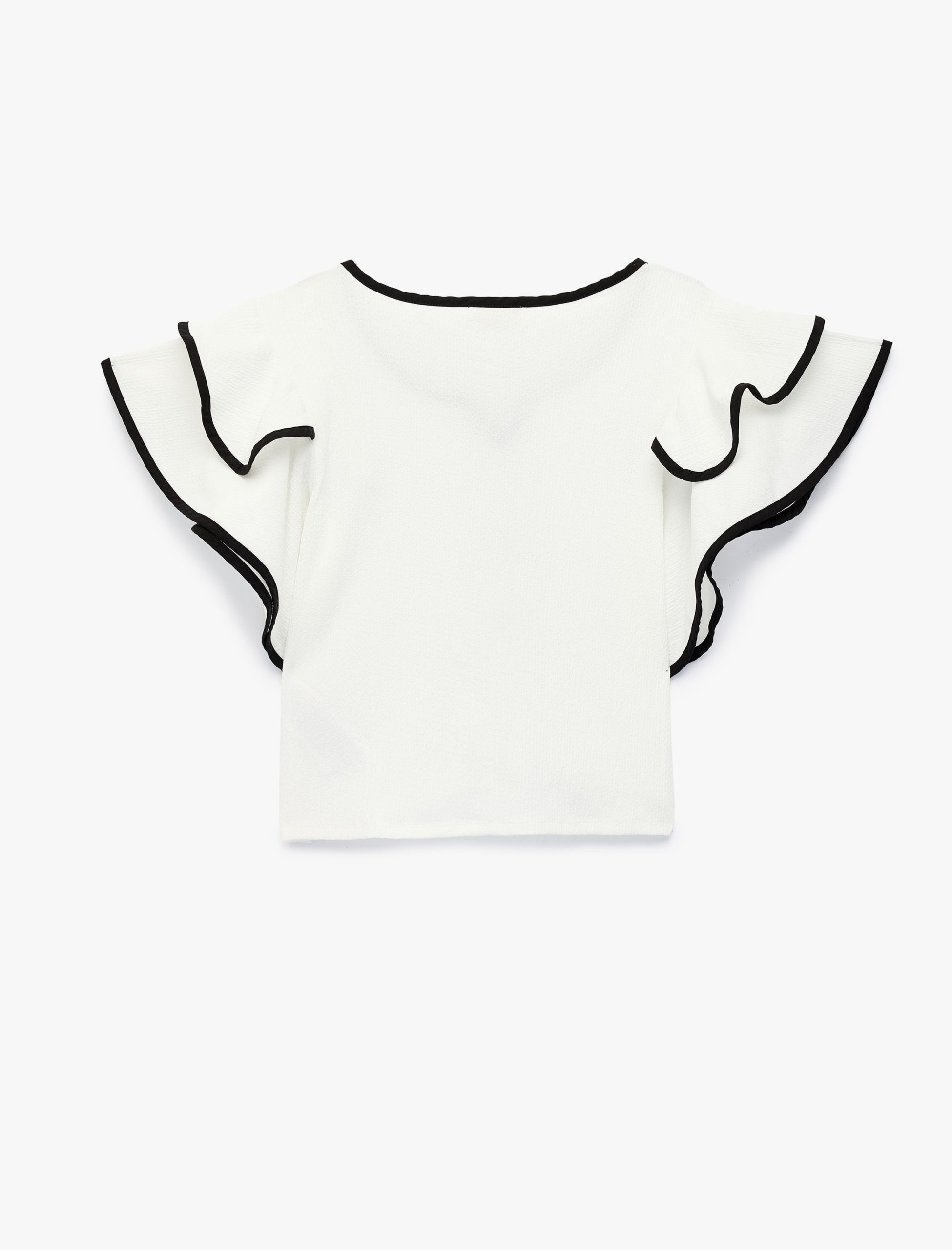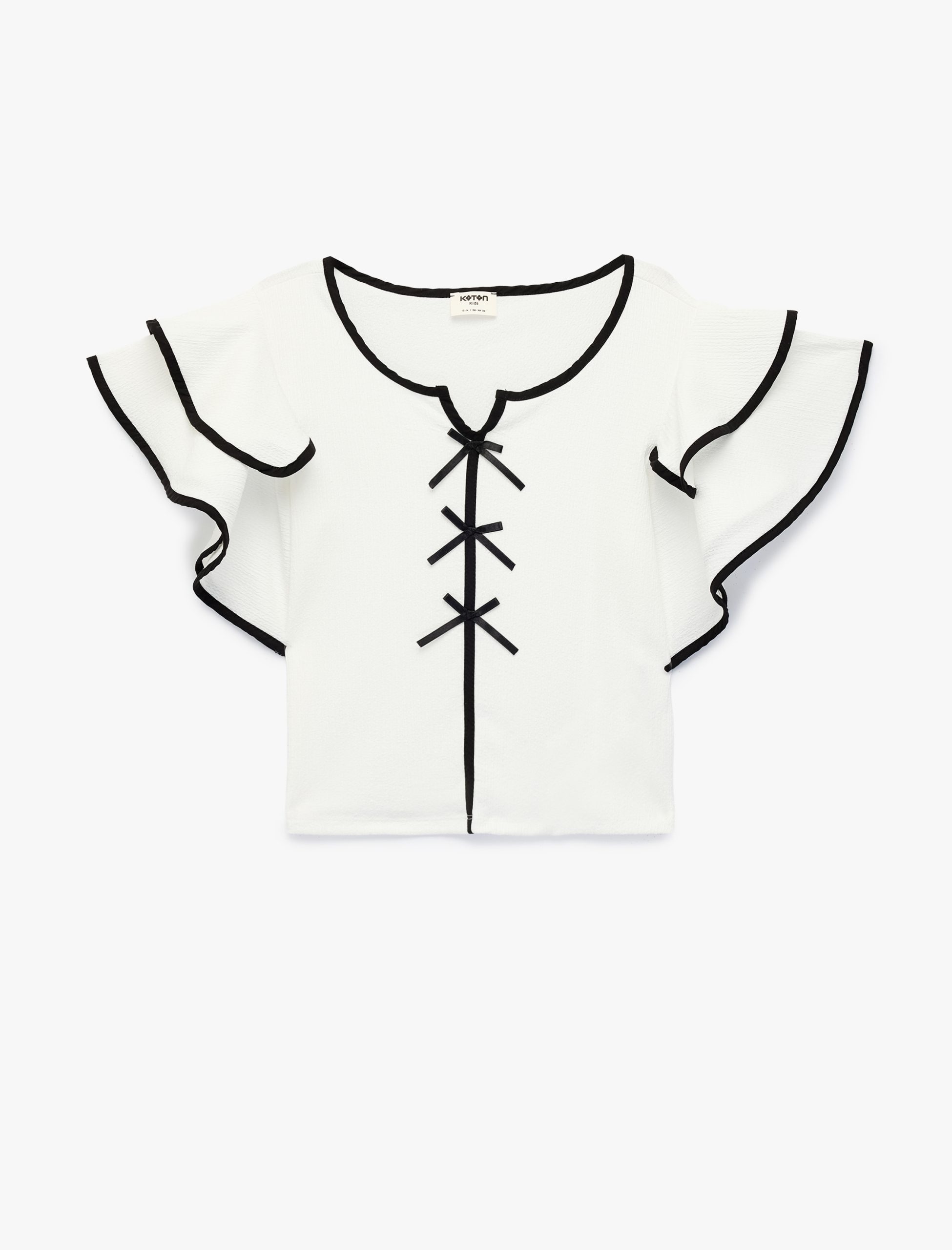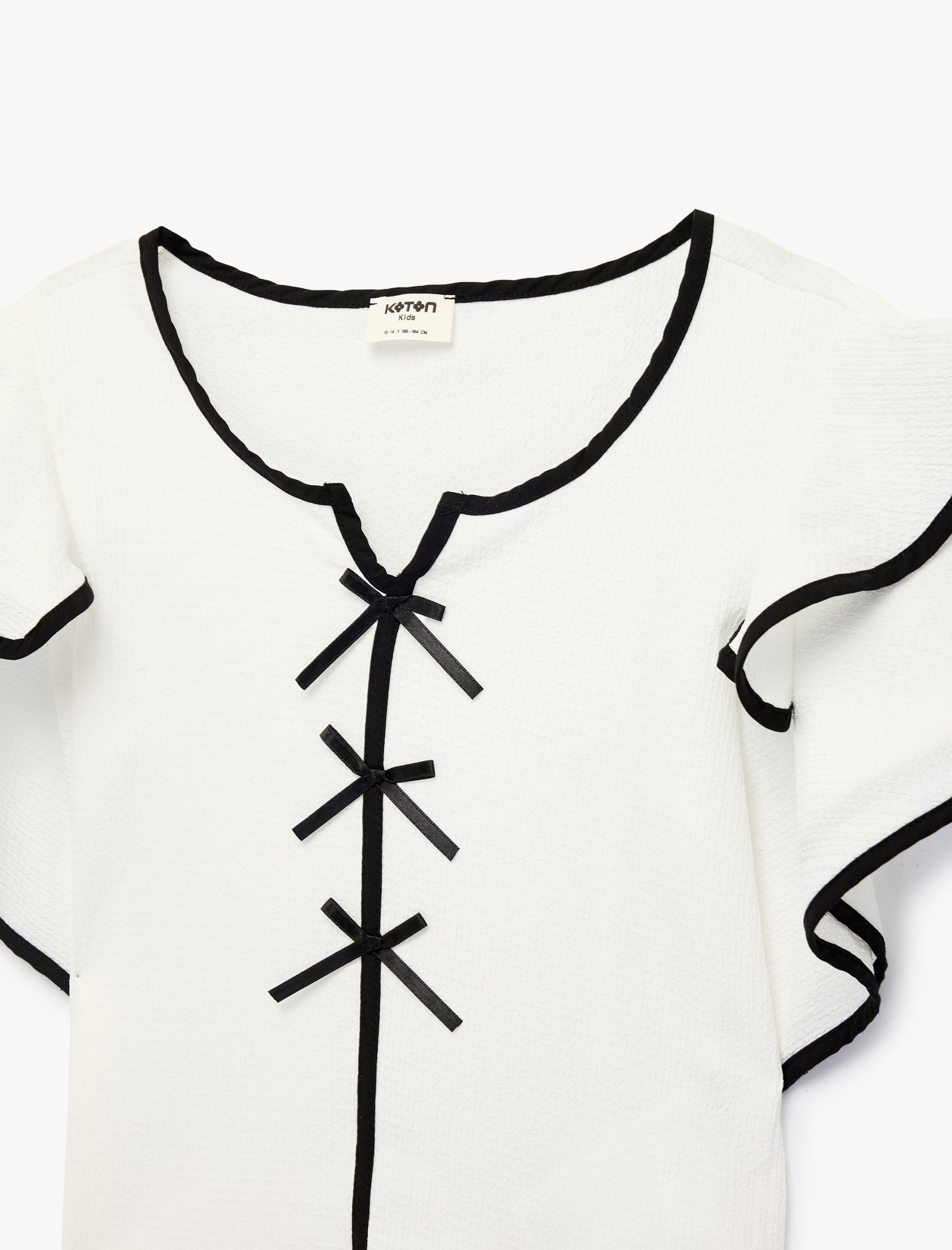 This bow-detailed blouse offers a charming and stylish alternative for little ones. Featuring a short-sleeve design and V-neck cut, it provides a modern look. The bow details add a playful and energetic touch to the blouse. With its lightweight construction, this blouse is ideal for warm weather and serves as a perfect choice for both daily activities and special occasions.