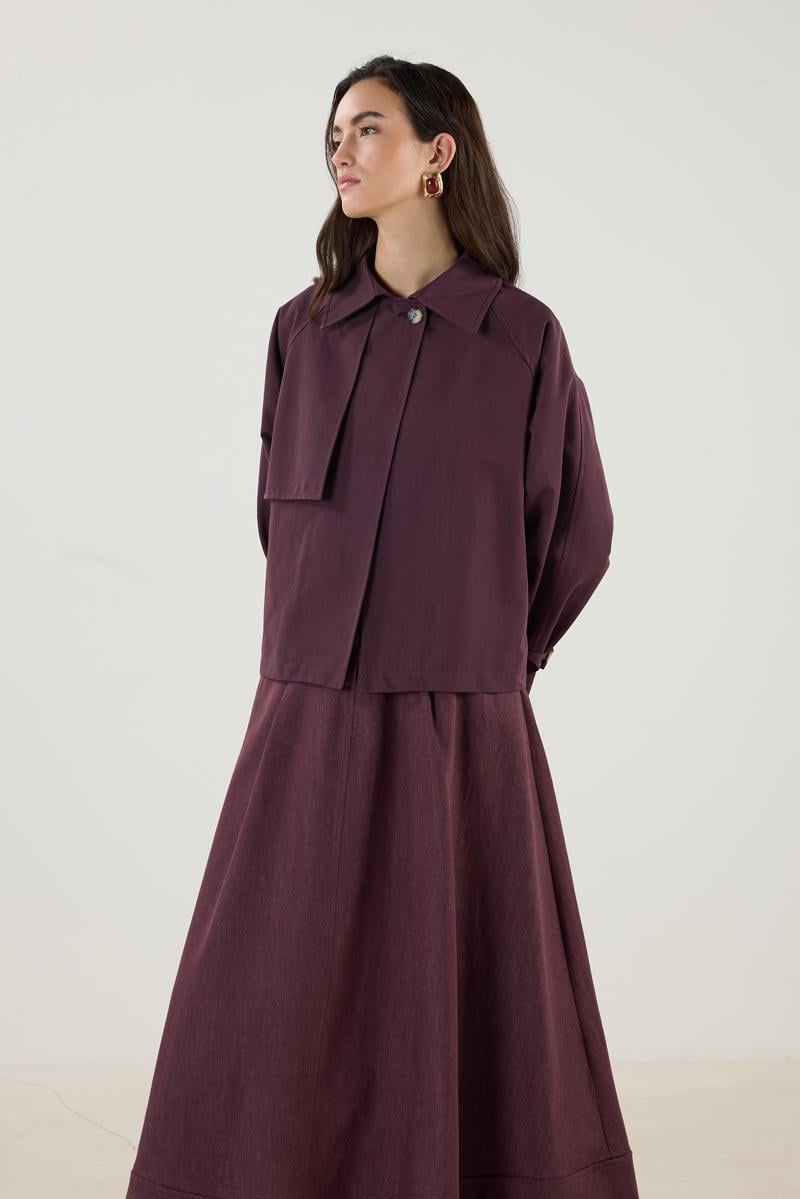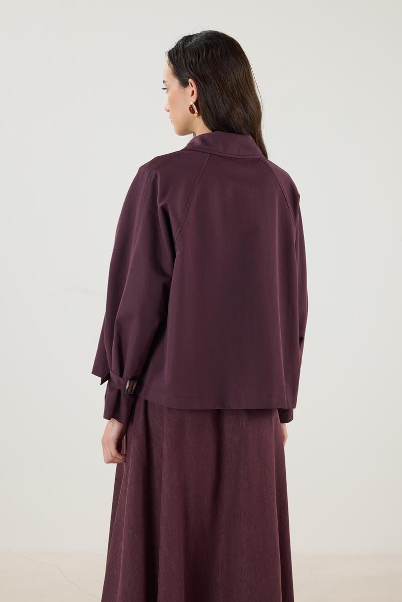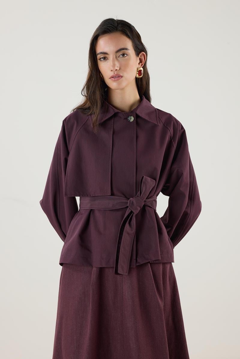 Be the first to review “Short Trench Coat with Belt and Pockets in Mulberry” Cancel reply