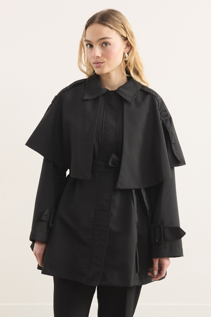 Be the first to review “Short Trench Coat with Collar Detail and Sleeve Belt – Black” Cancel reply