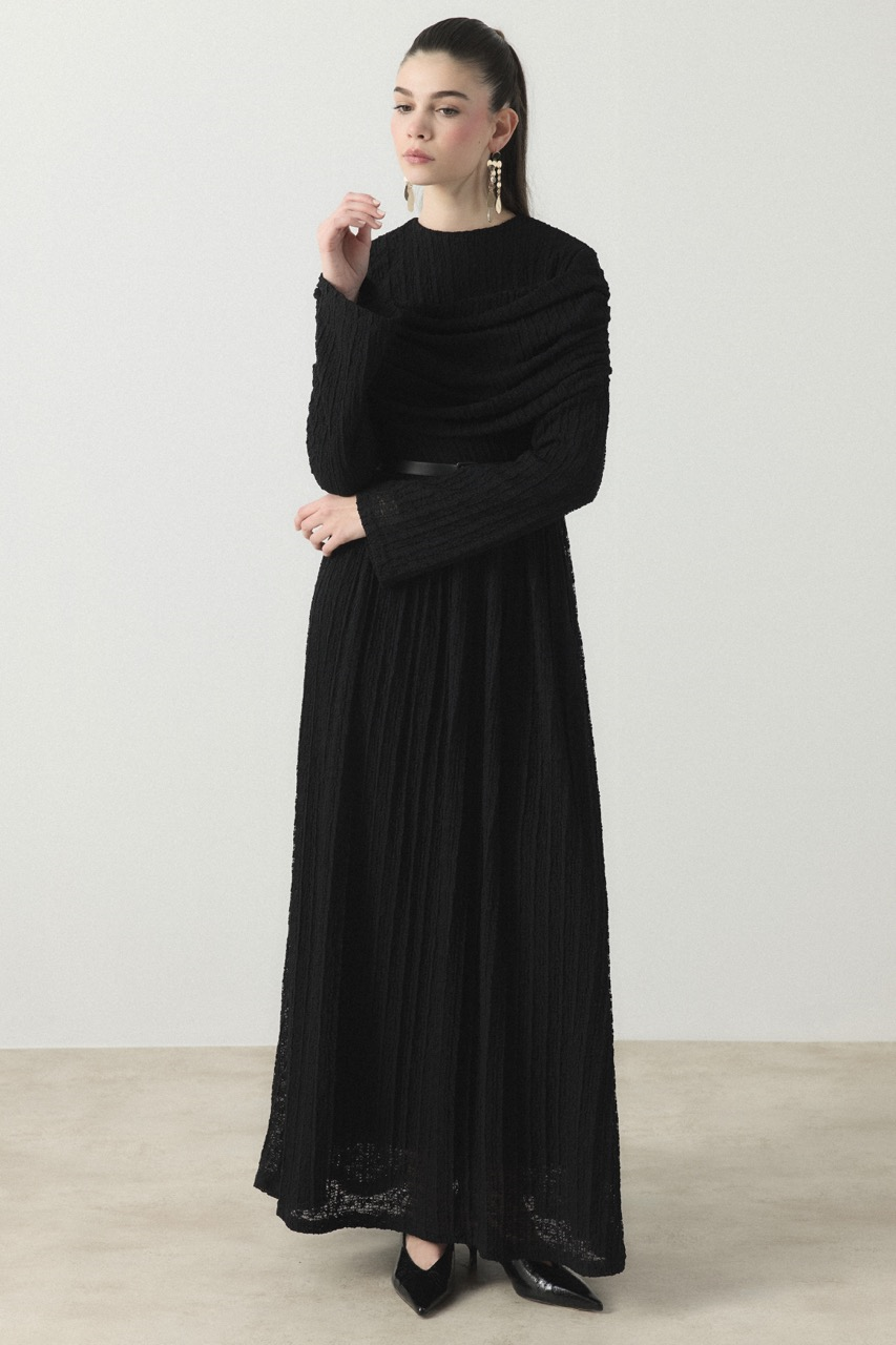 Ivory Asimetrik Yaka Detay Triko Elbise – Siyah