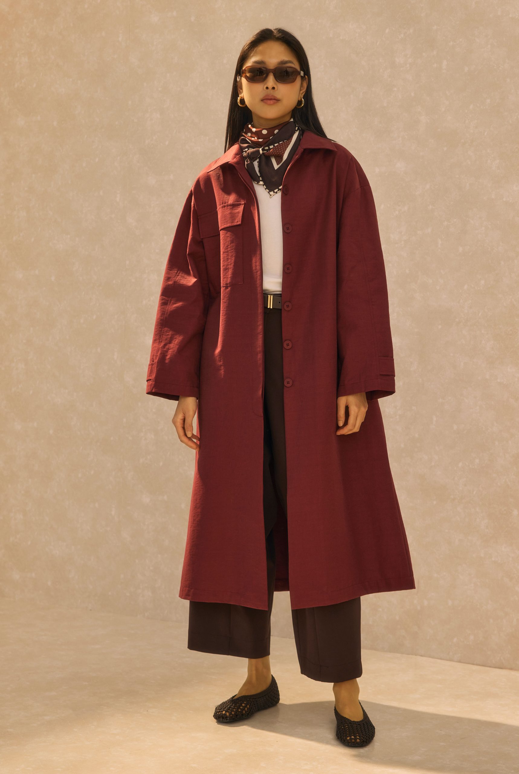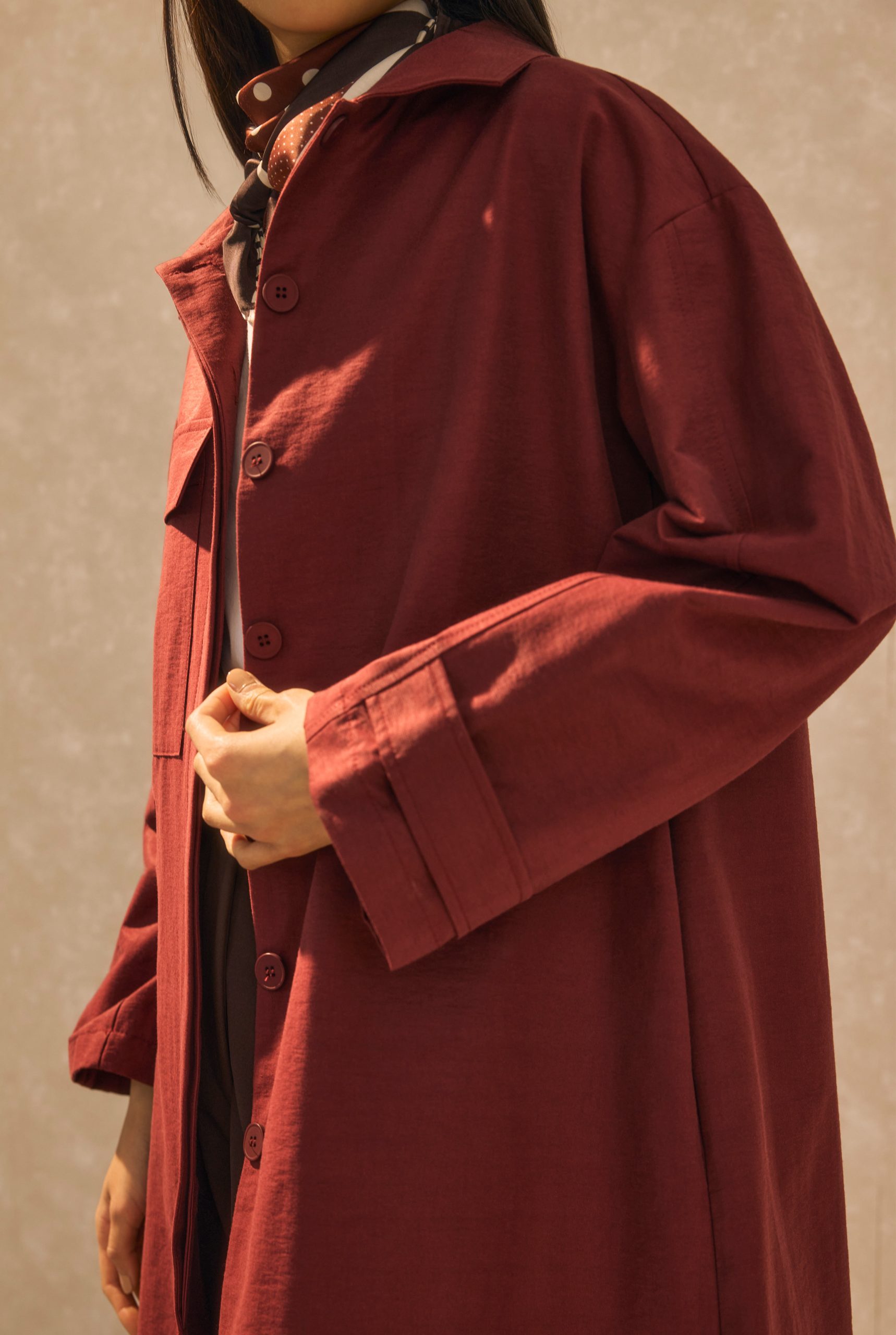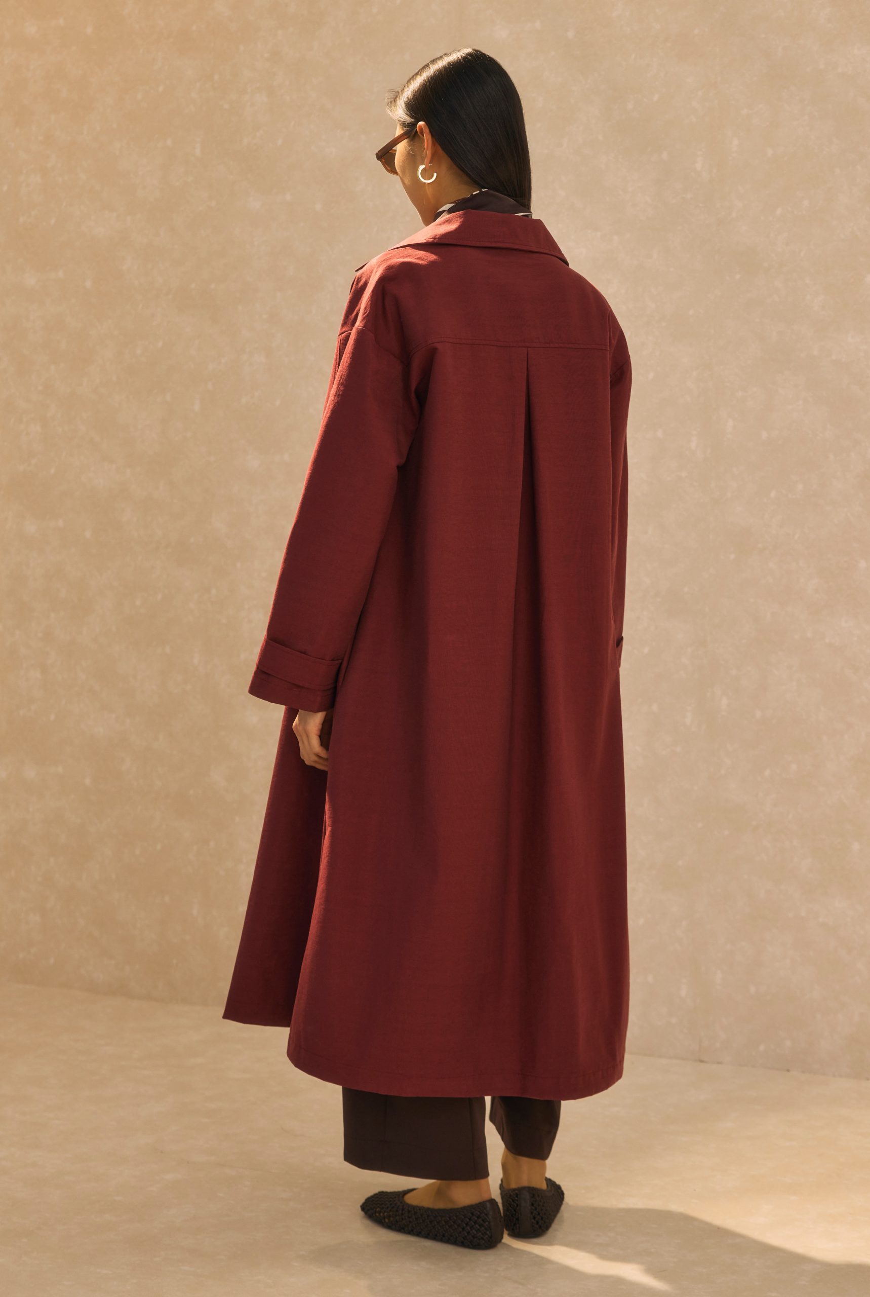 Be the first to review “Single Pocket Detailed Long Trenchcoat Bordeaux”