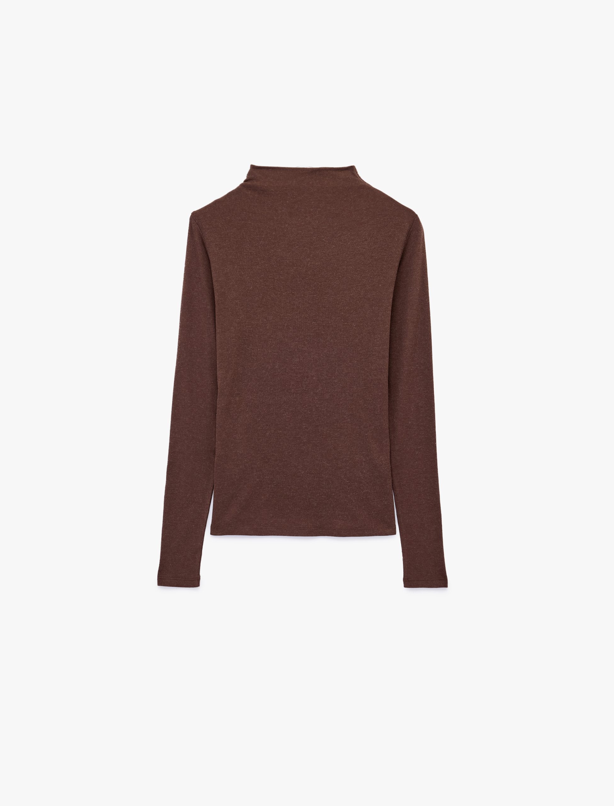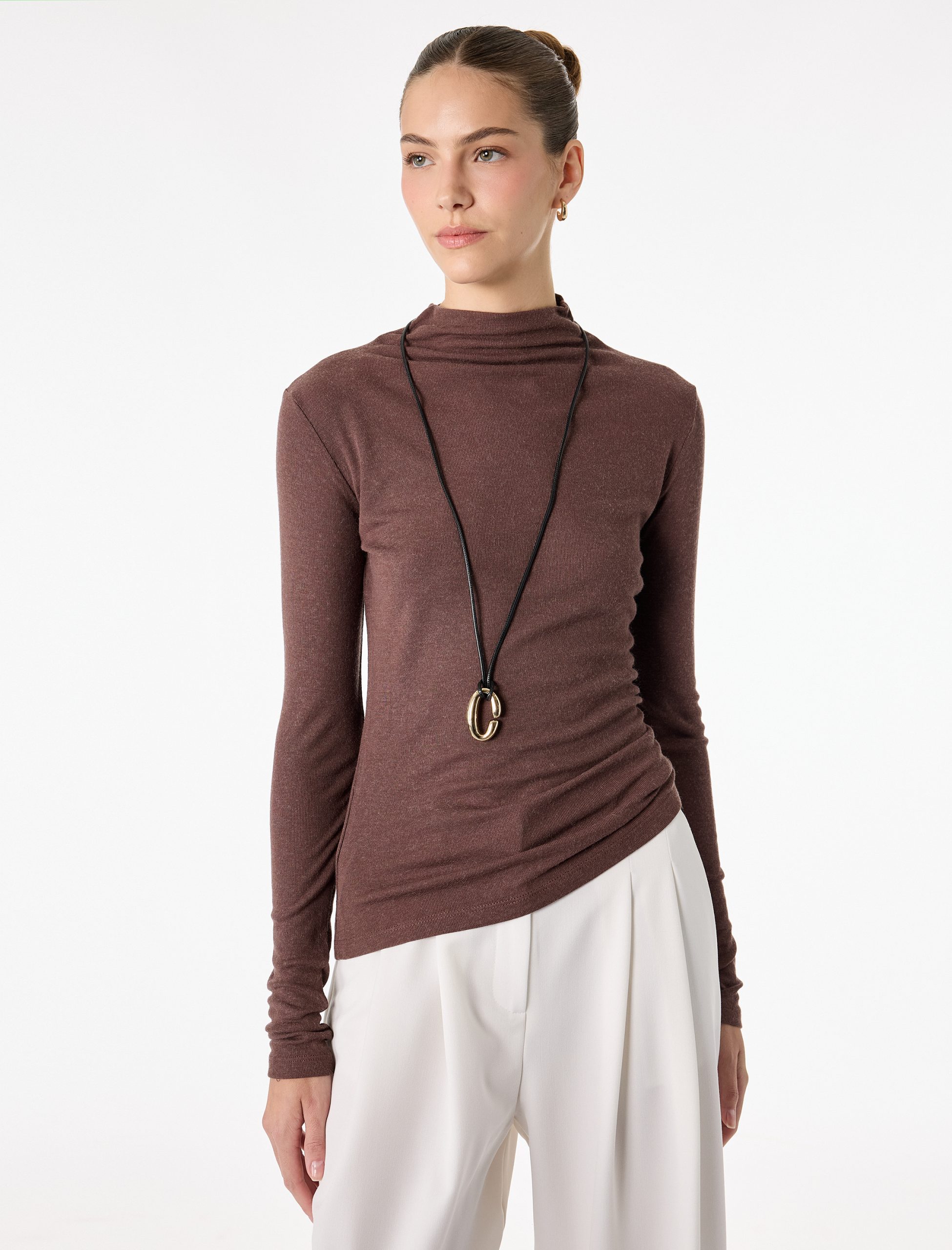 This elegant long-sleeve t-shirt features a chic, minimalist design that adds sophistication to your wardrobe. Its crew neck and slim fit cut gently hug your body, creating a graceful silhouette. Made with a breathable wool blend fabric, this t-shirt is a wardrobe favorite. Its versatile design makes it perfect for both casual everyday wear and polished office looks.