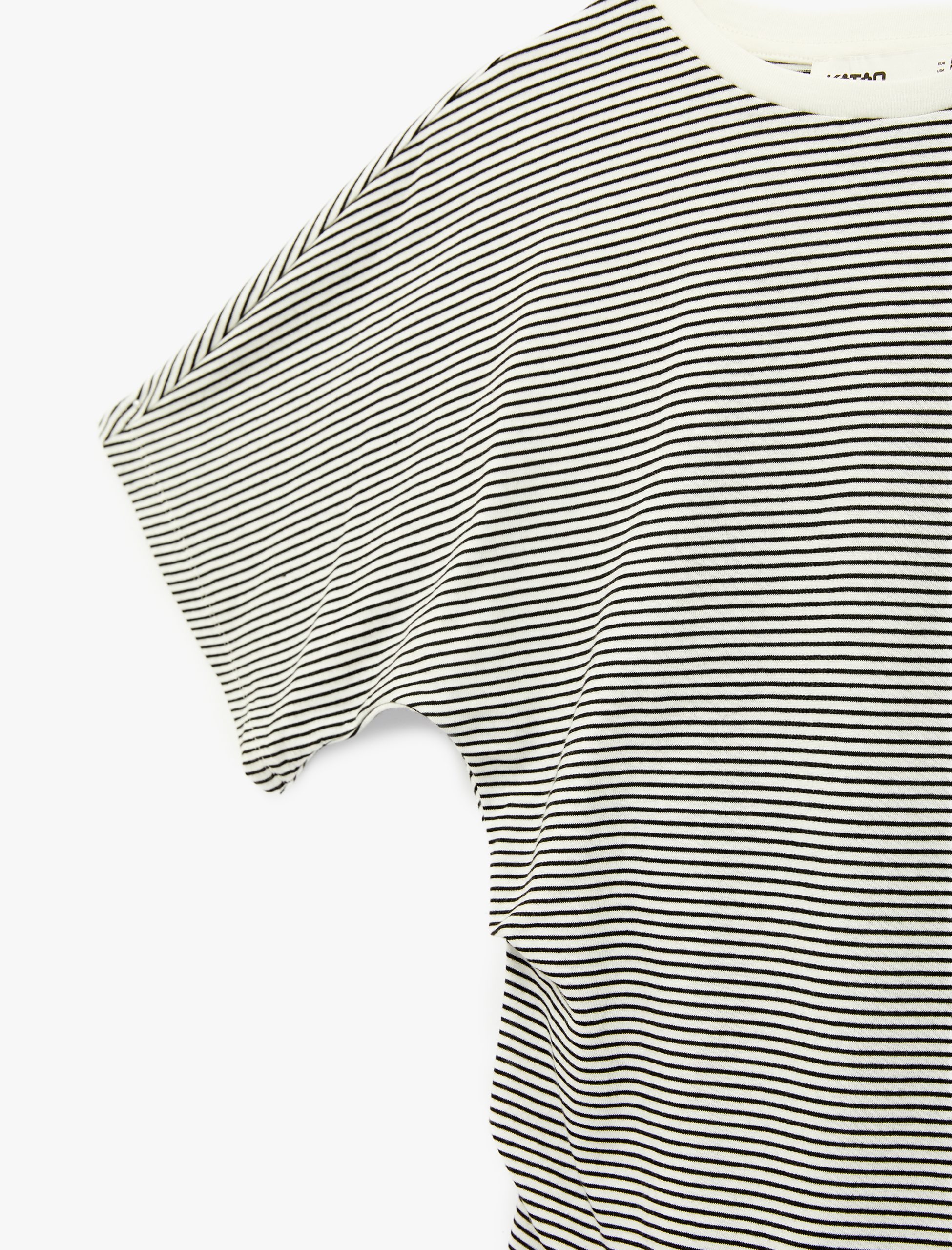 This slim fit short sleeve striped t-shirt combines elegance and comfort for any occasion. Featuring a crew neck design suitable for daily wear, it stands out with its drape detailing. The cotton blend fabric offers breathability along with a comfortable wearing experience. With its relaxed fit and elegant stripes, it stylishly accentuates your body contours. Designed to complement both your sportswear combinations and everyday elegance, this t-shirt is destined to become a favorite. Styling Suggestion: Pair this short sleeve t-shirt with high-waisted denim shorts for a comfortable yet stylish summer look. Complete the outfit with sneakers and a crossbody bag for perfect casual daywear or friend meetups. For a more elegant appearance, combine it with a mini skirt and thin heeled sandals to create a striking style for summer evenings. Product Features: Sleeve Type: Short Sleeve Neck Type: Crew Neck Fit: Slim Fit Fabric: 64% Cotton, 12% Viscose, 24% Polyester Usage Area: Daily Wear, Sportswear Create trendy combinations with Koton t-shirt models. Add a modern and comfortable vibe to your outfits now!