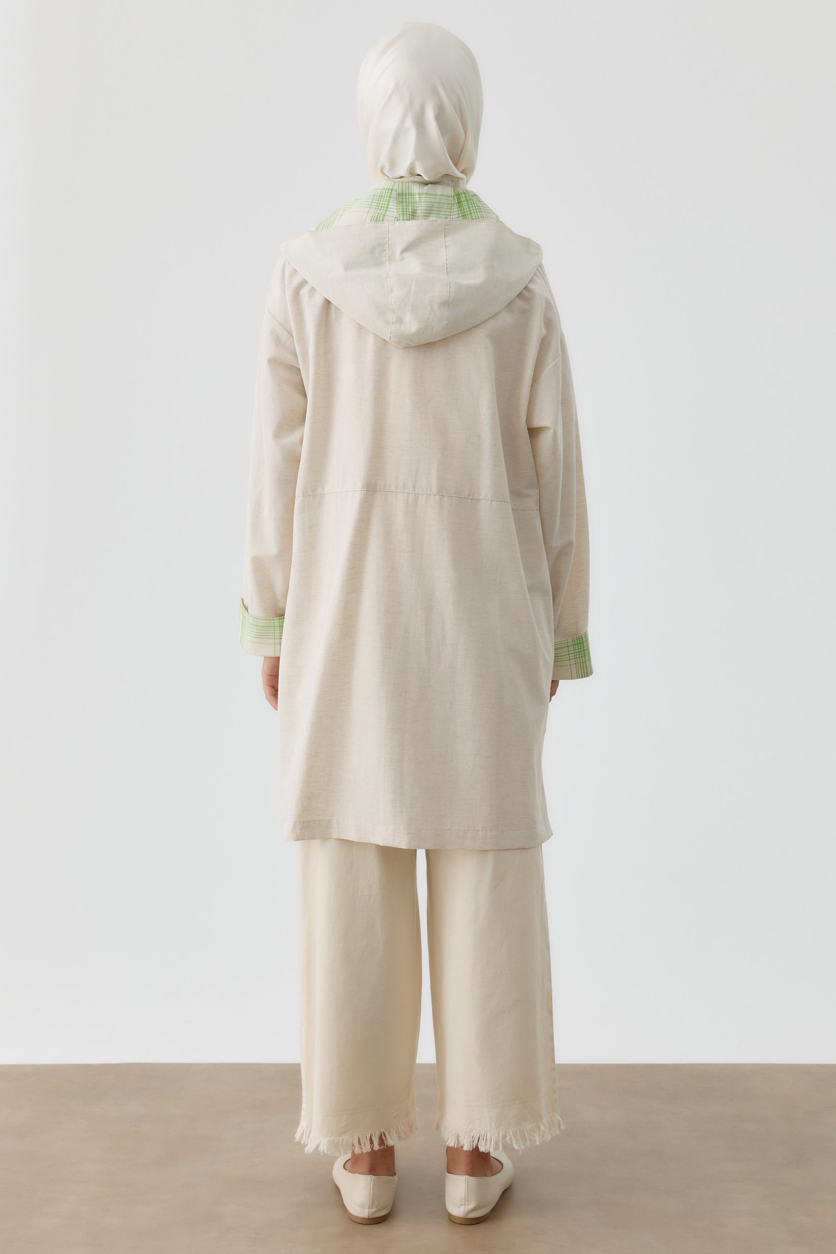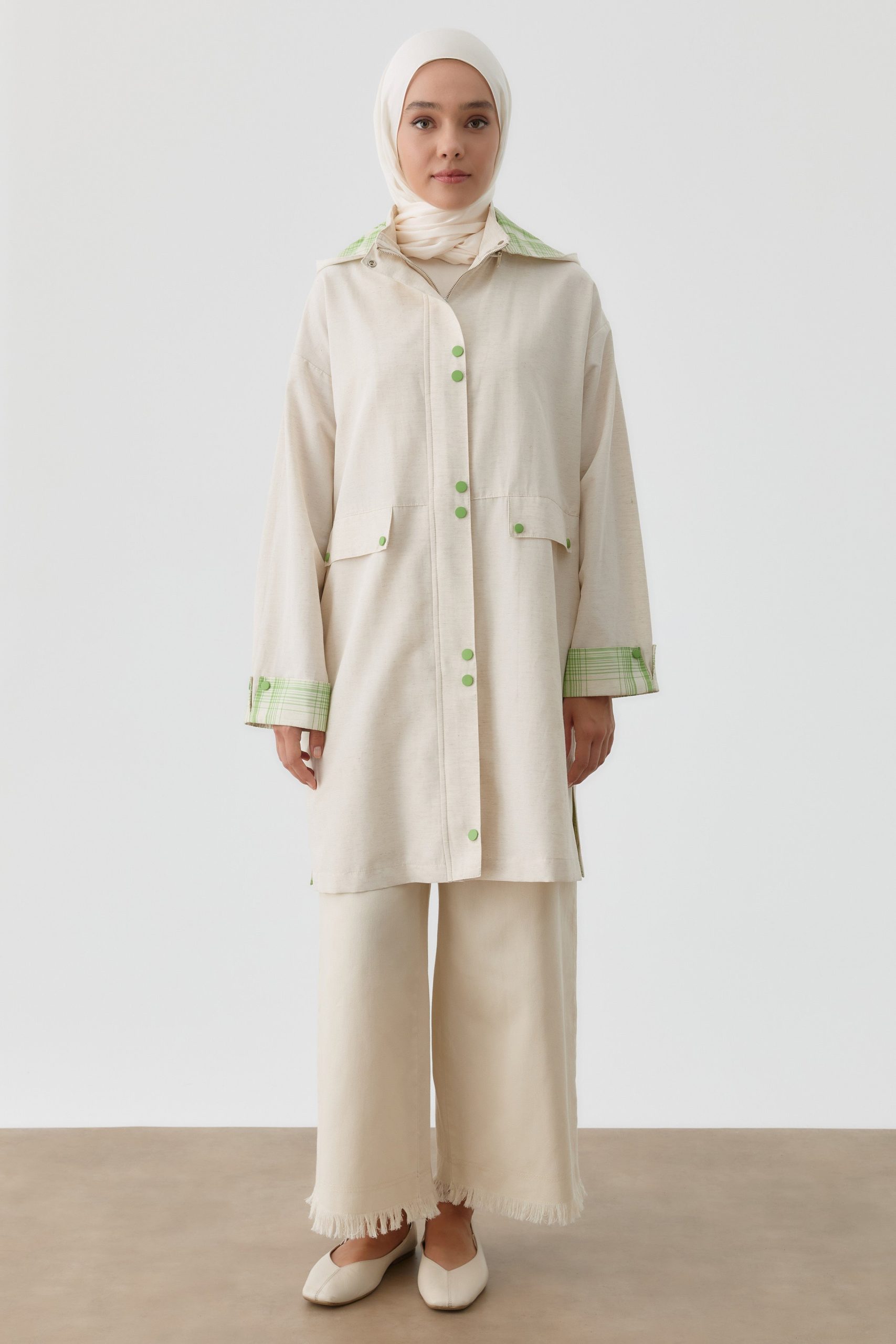 Snap Button Detailed Coat with Plaid Combo – Beige – Indigo